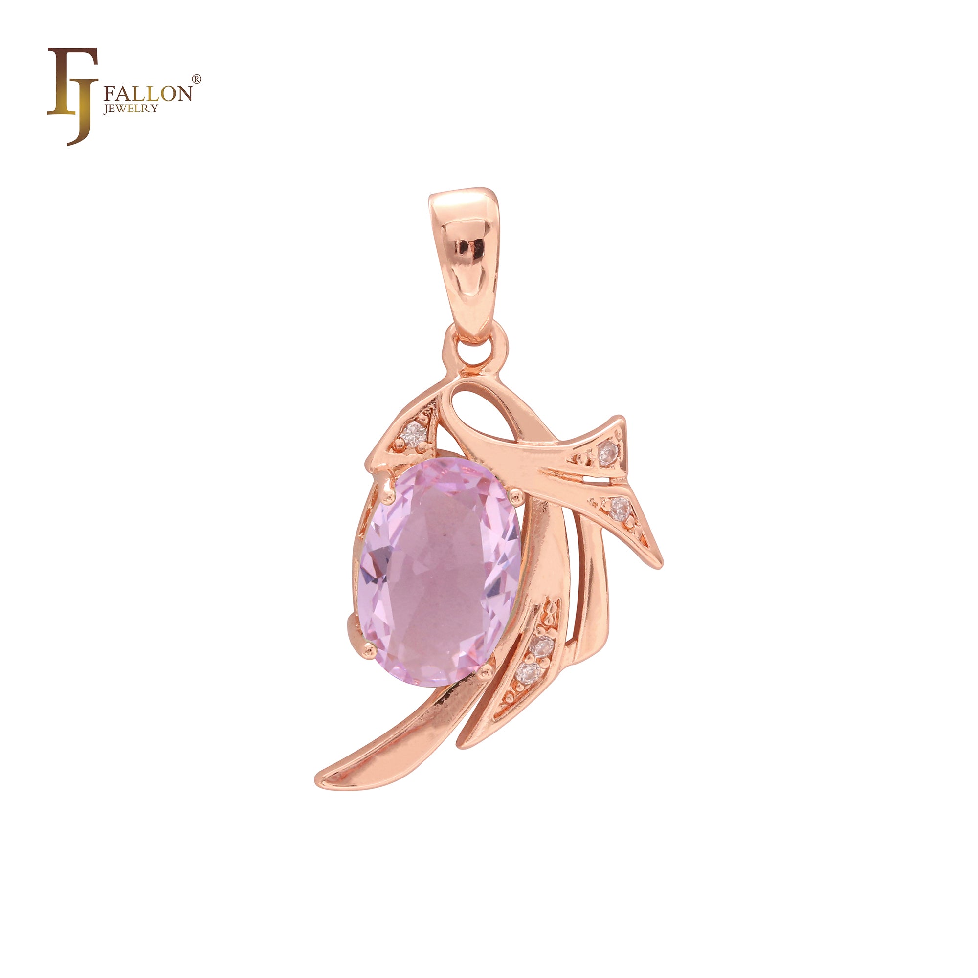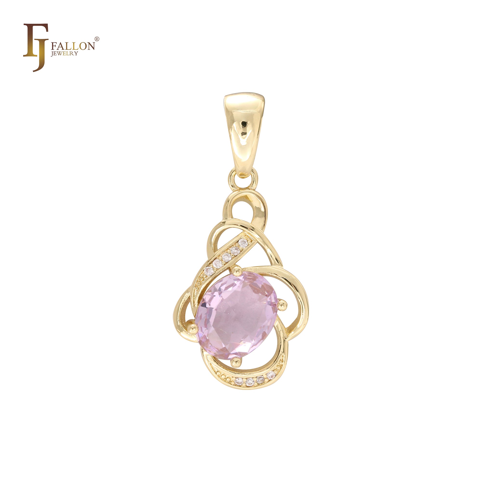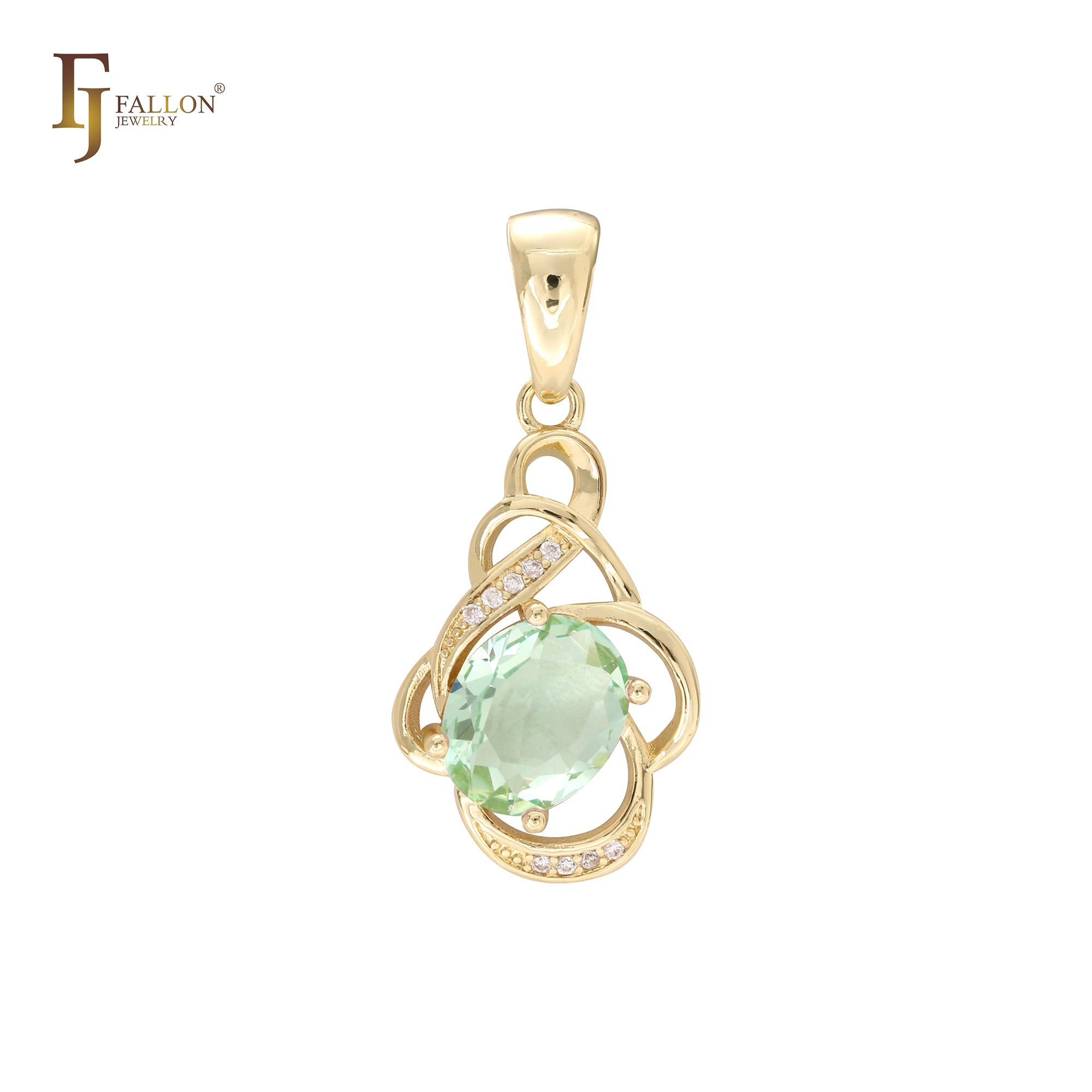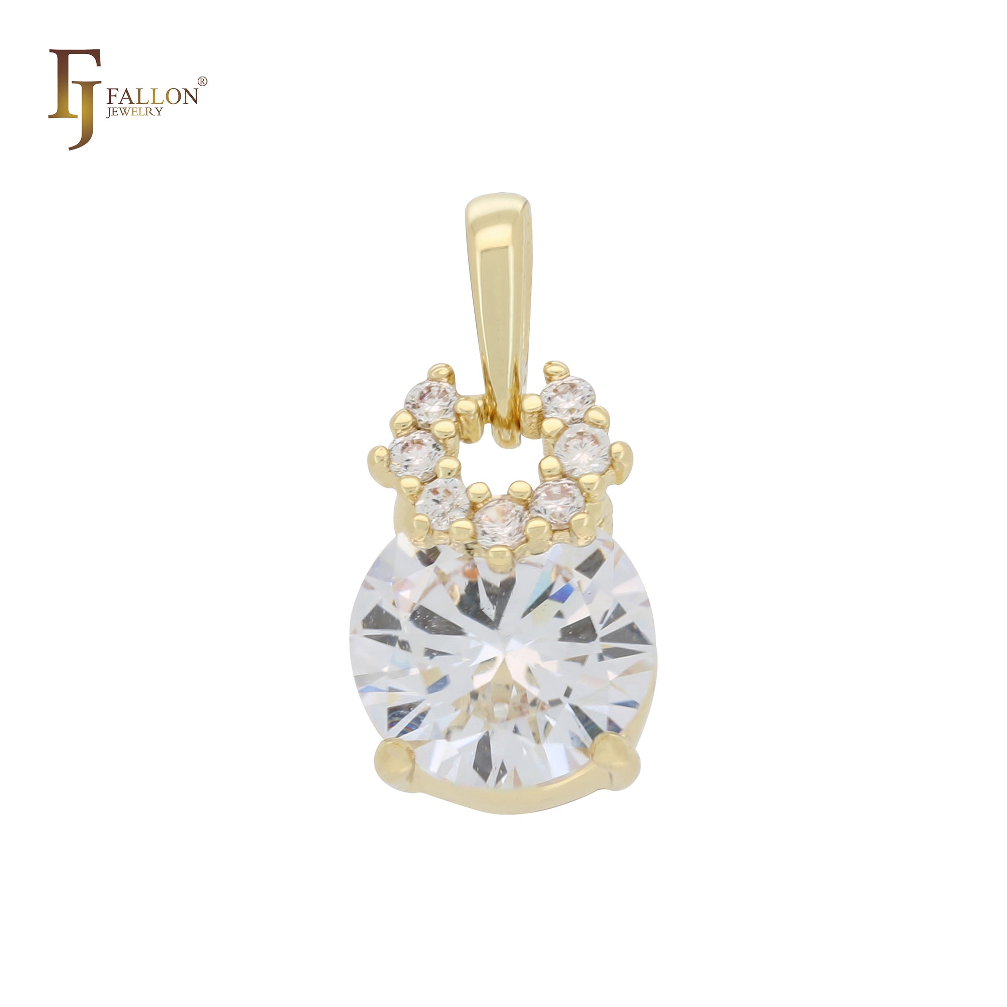 Rounded big CZ 14K Gold, Rose Gold, White Gold colorful Solitaire Pendant