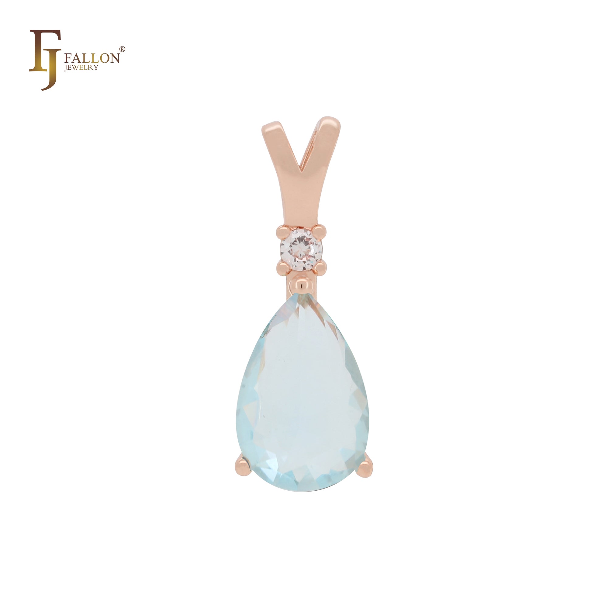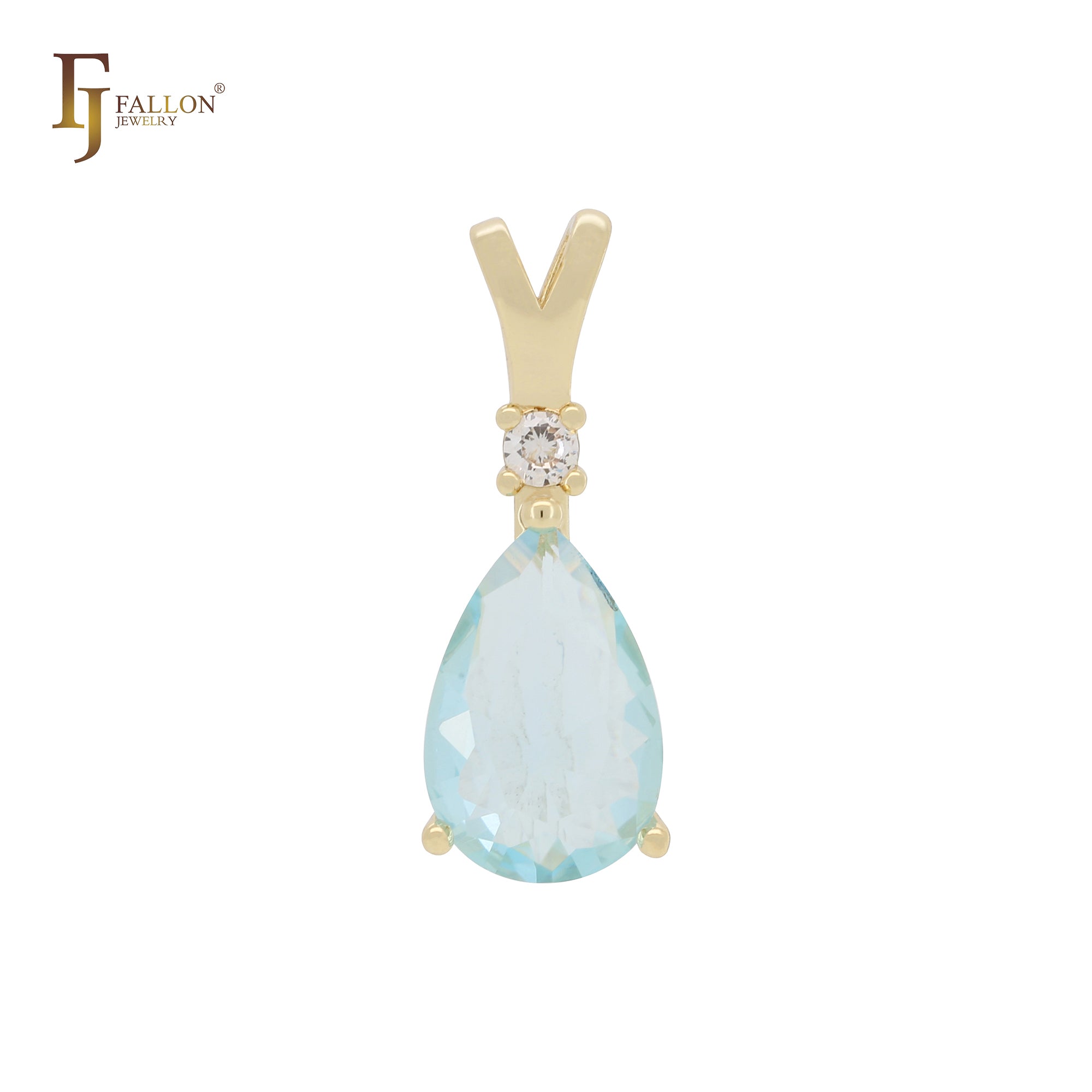 Lake Blue Pear shape CZ 14K Gold, Rose Gold, White Gold Solitaire Pendant