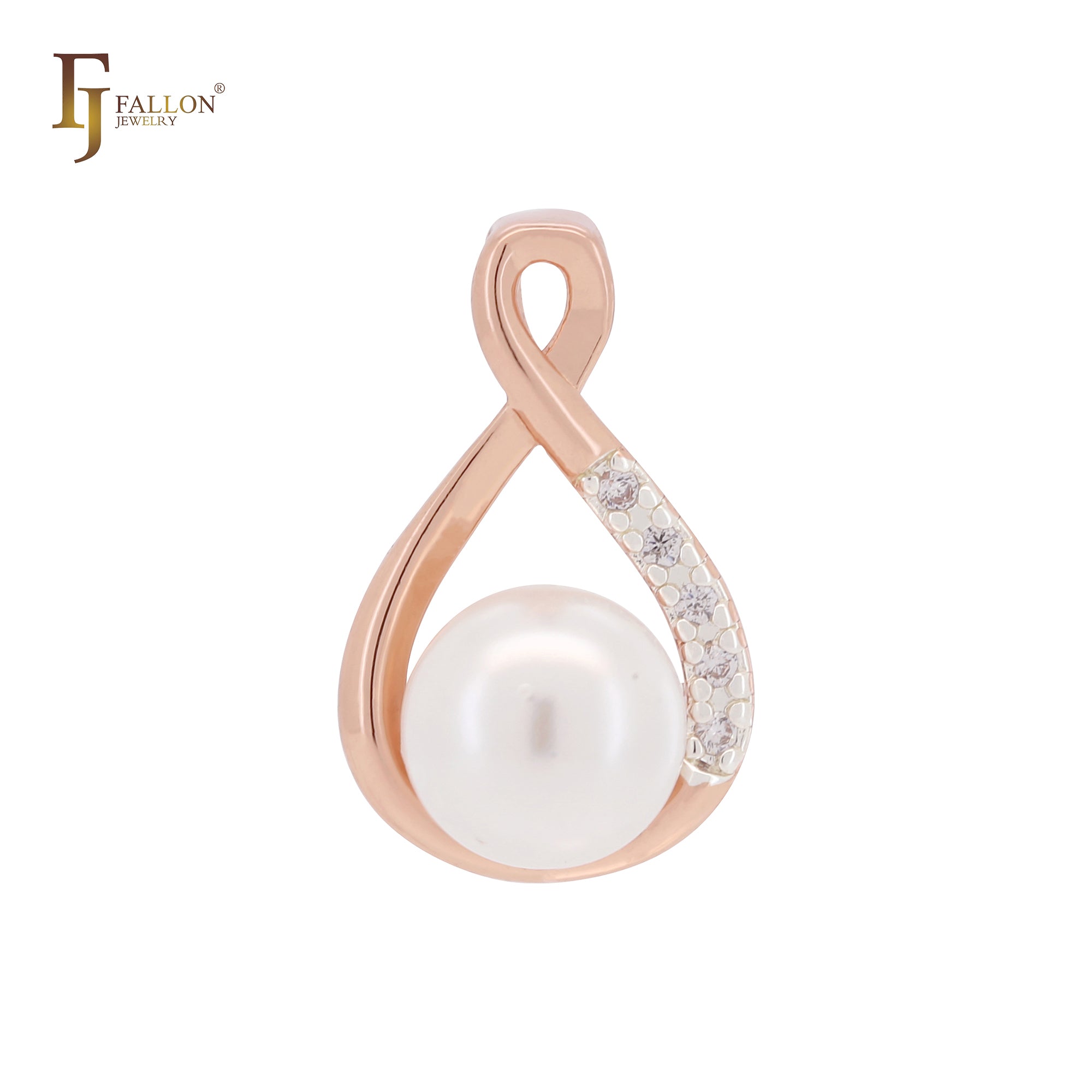 Pearl with white CZs minimalism Rose Gold two tone Solitaire Pendant