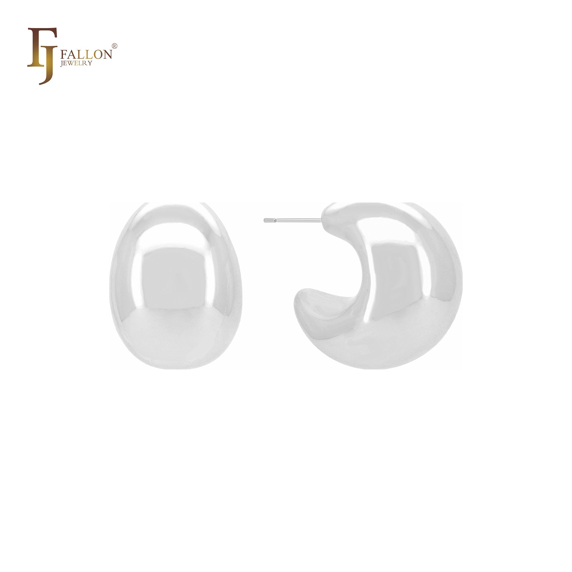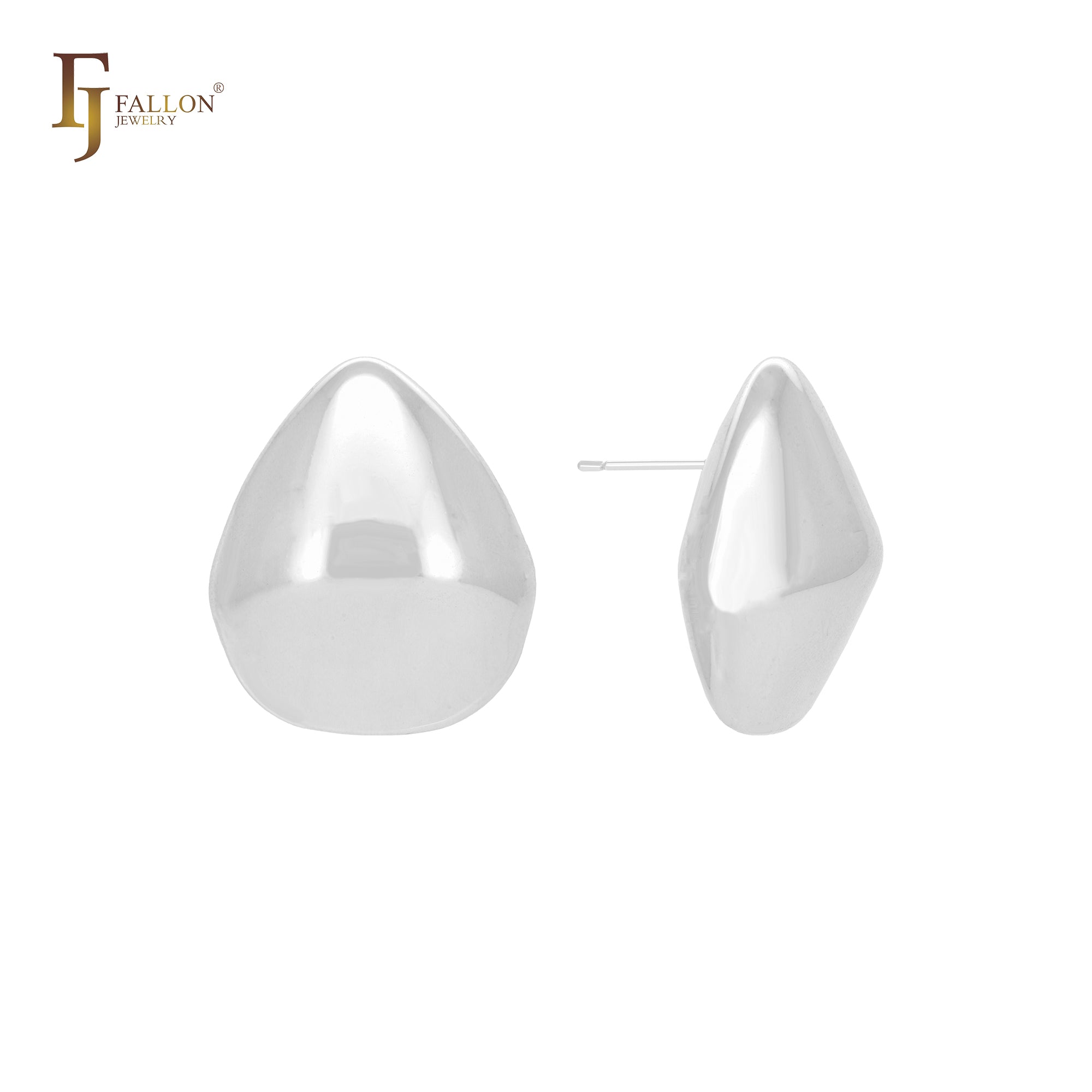 Curved glossy bean shape 14K Gold, Rose Gold, White Gold Stud Earrings