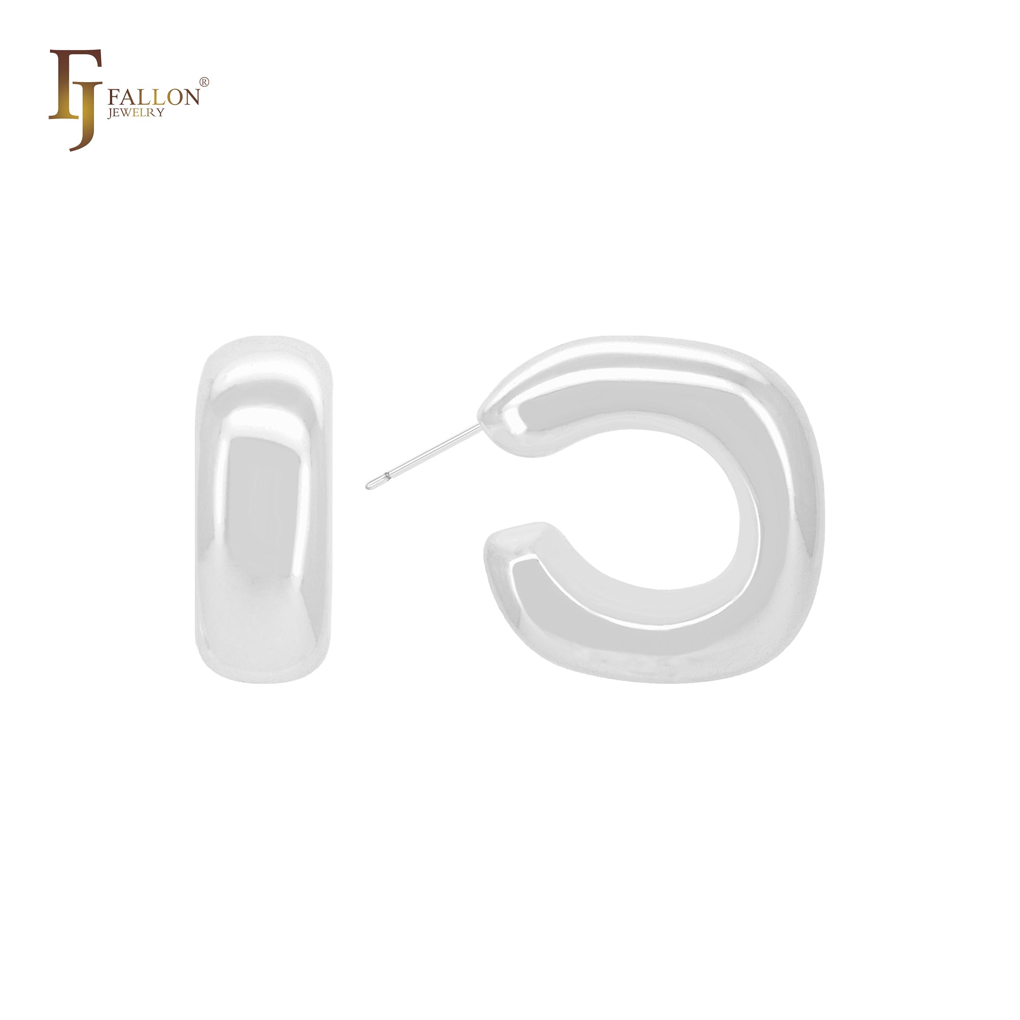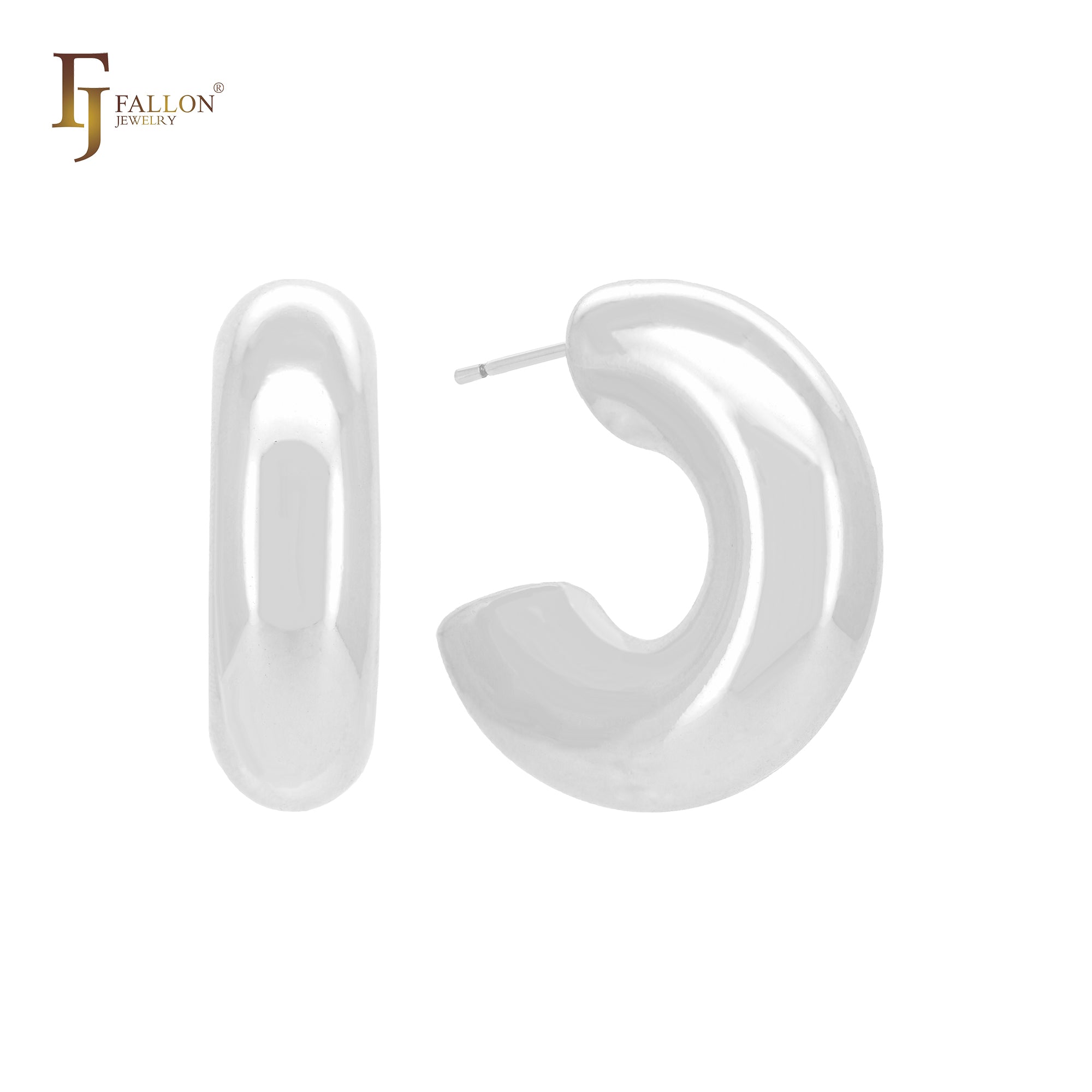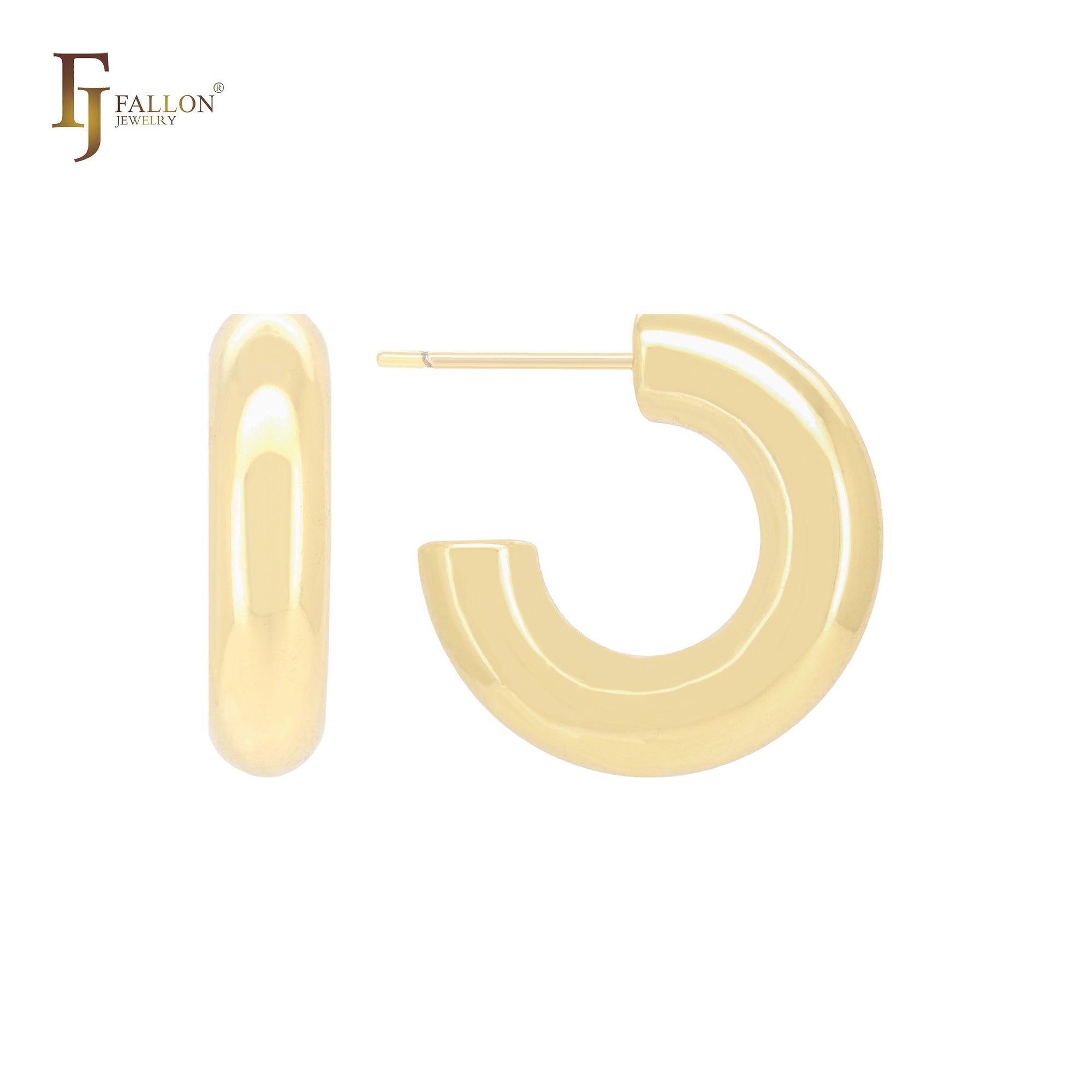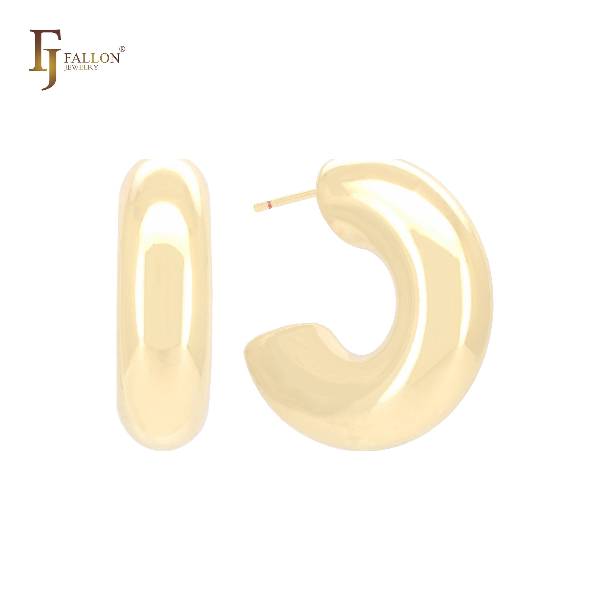 Chunky Glossy C Hoop 14K Gold, Rose Gold, White Gold Stud Earrings