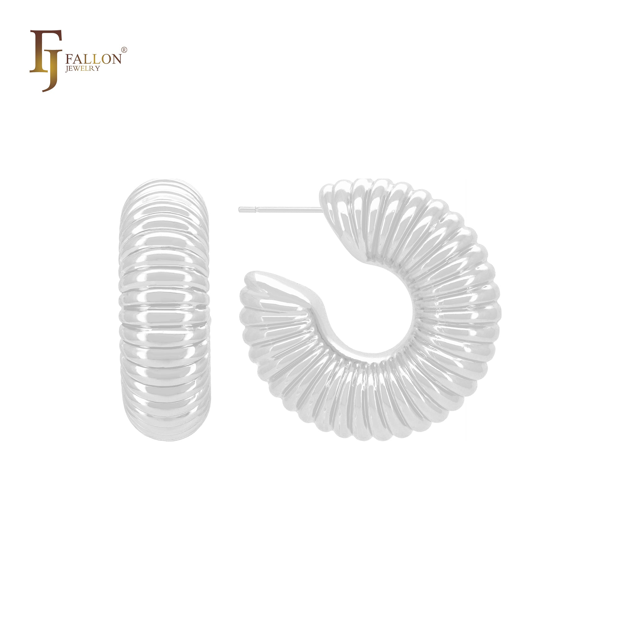 Twisted band irregular shaped 14K Gold, Rose Gold, White Gold Hoop Earrings