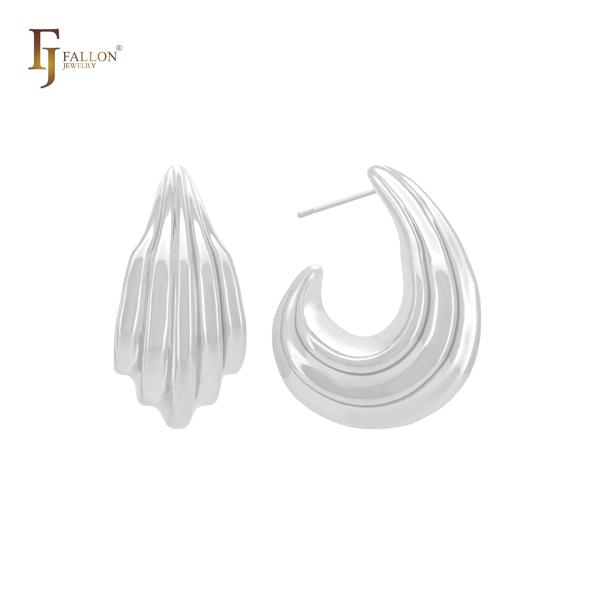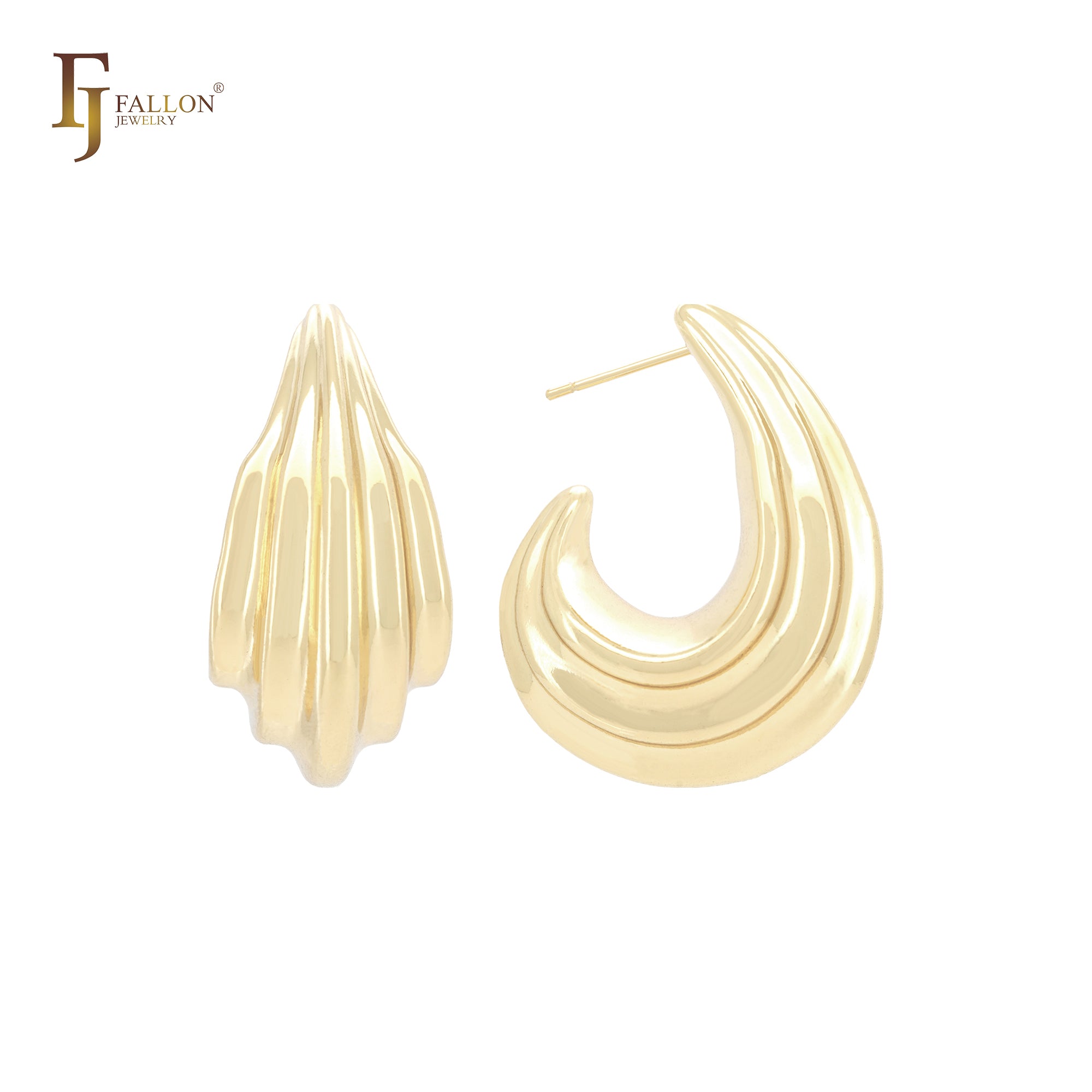 Interlocking stacking shell shape C Hoop 14K Gold, Rose Gold, White Gold Stud Earrings