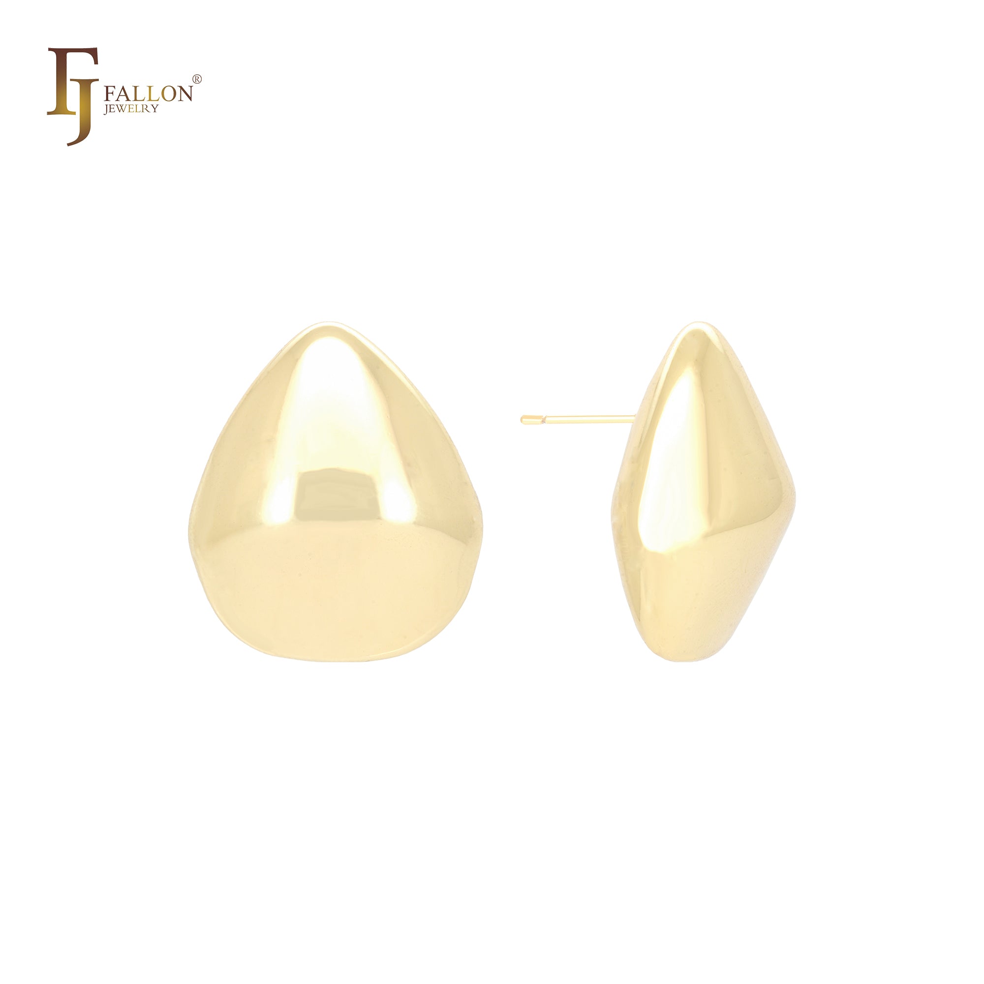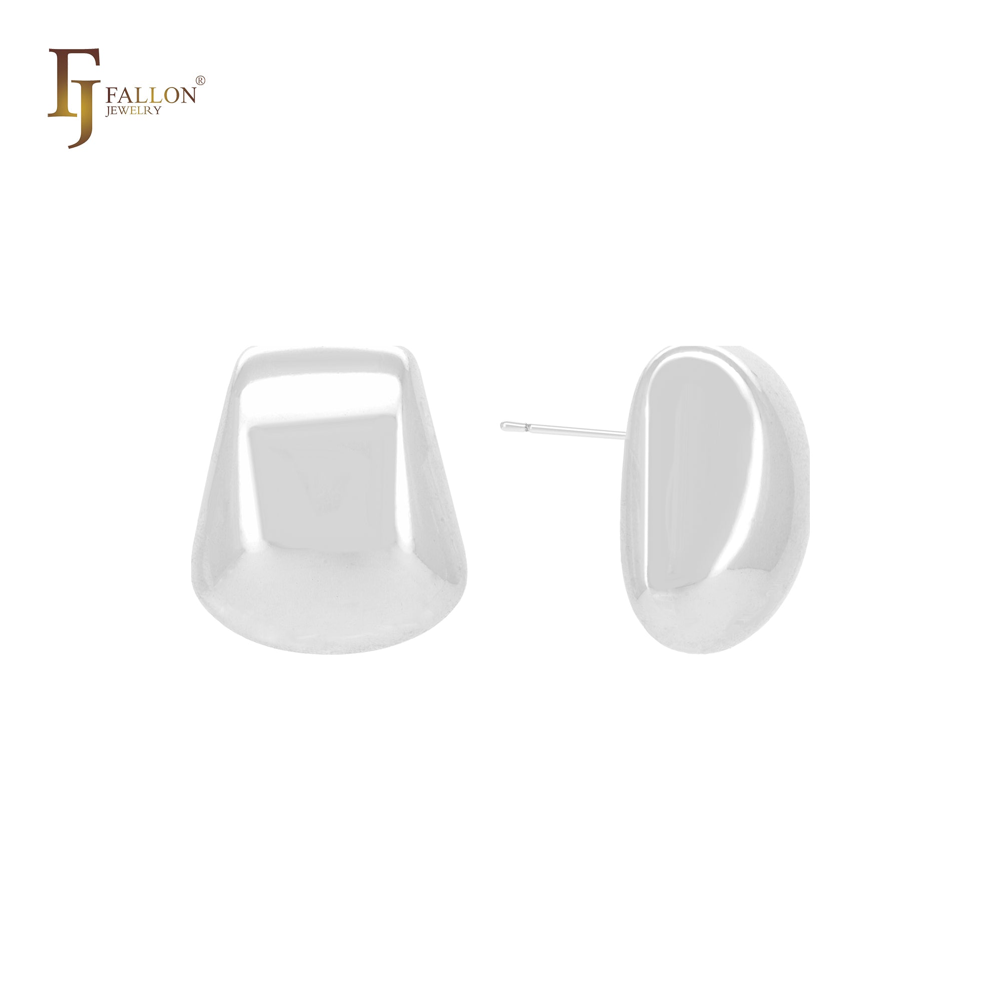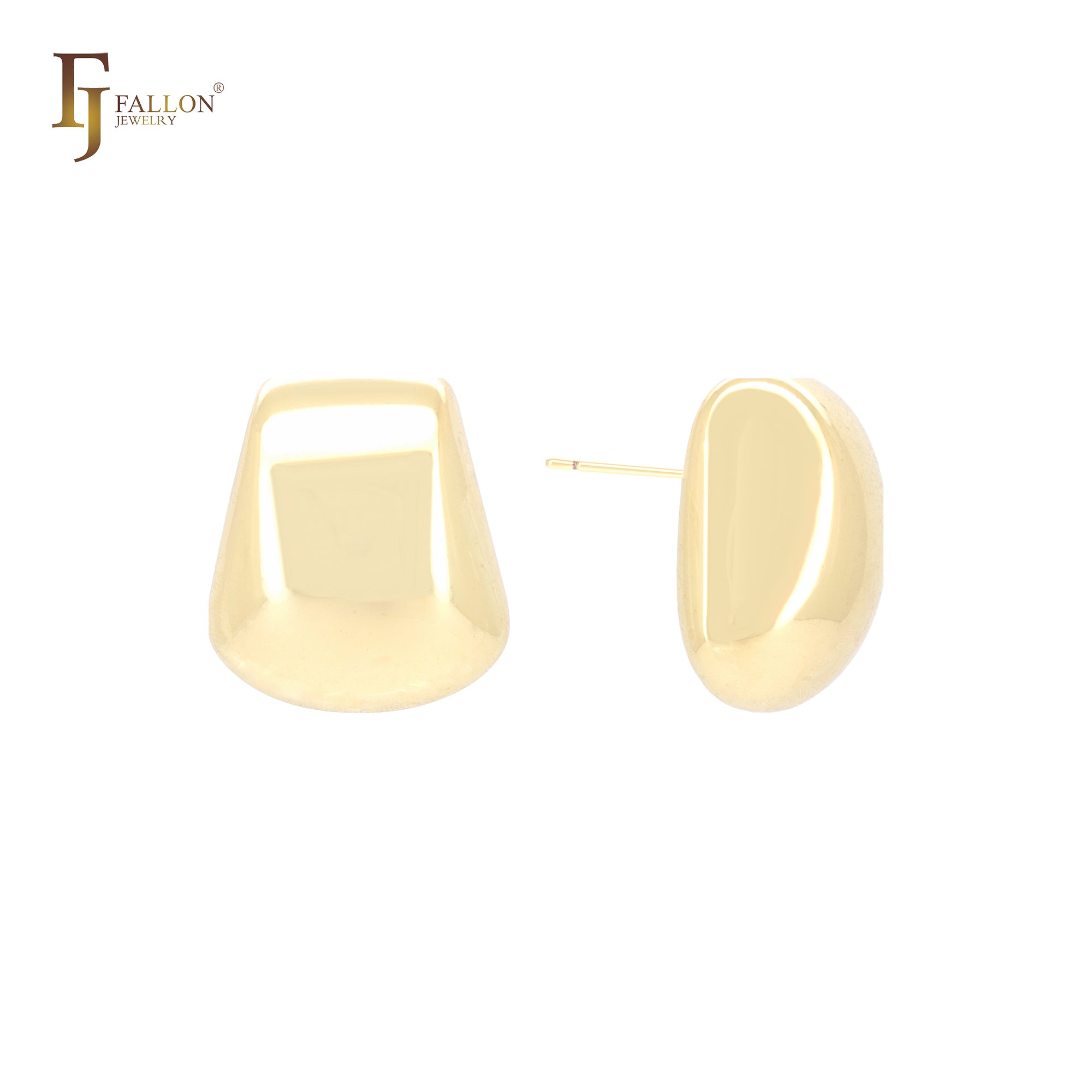 Glossy geometric bell shaped 14K Gold, Rose Gold, White Gold Stud Earrings