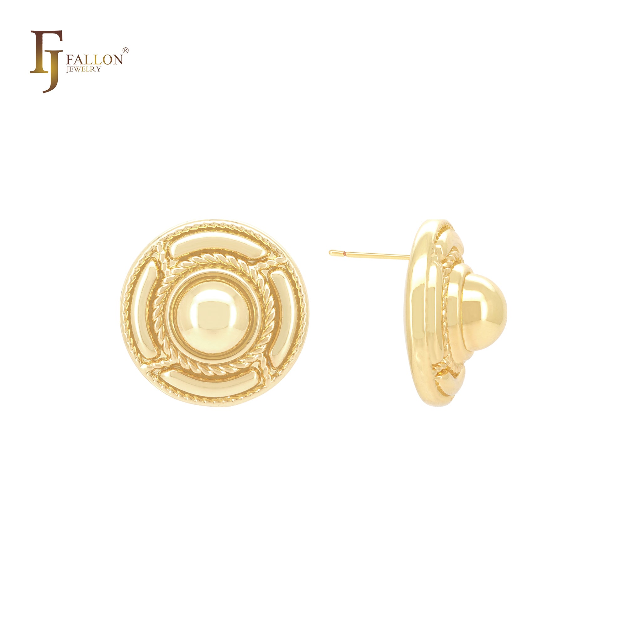 Rounde UFO shaped of roped textured 14K Gold, Rose Gold, White Gold Stud Earrings