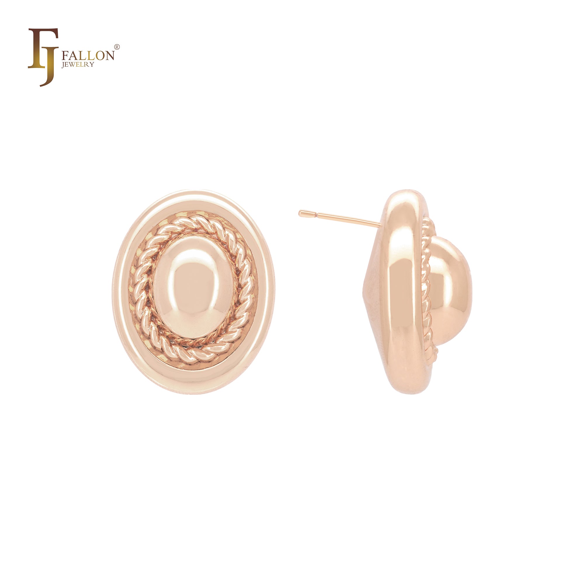 Oval hat with rope rounded shaped 14K Gold, Rose Gold, White Gold Stud Earrings
