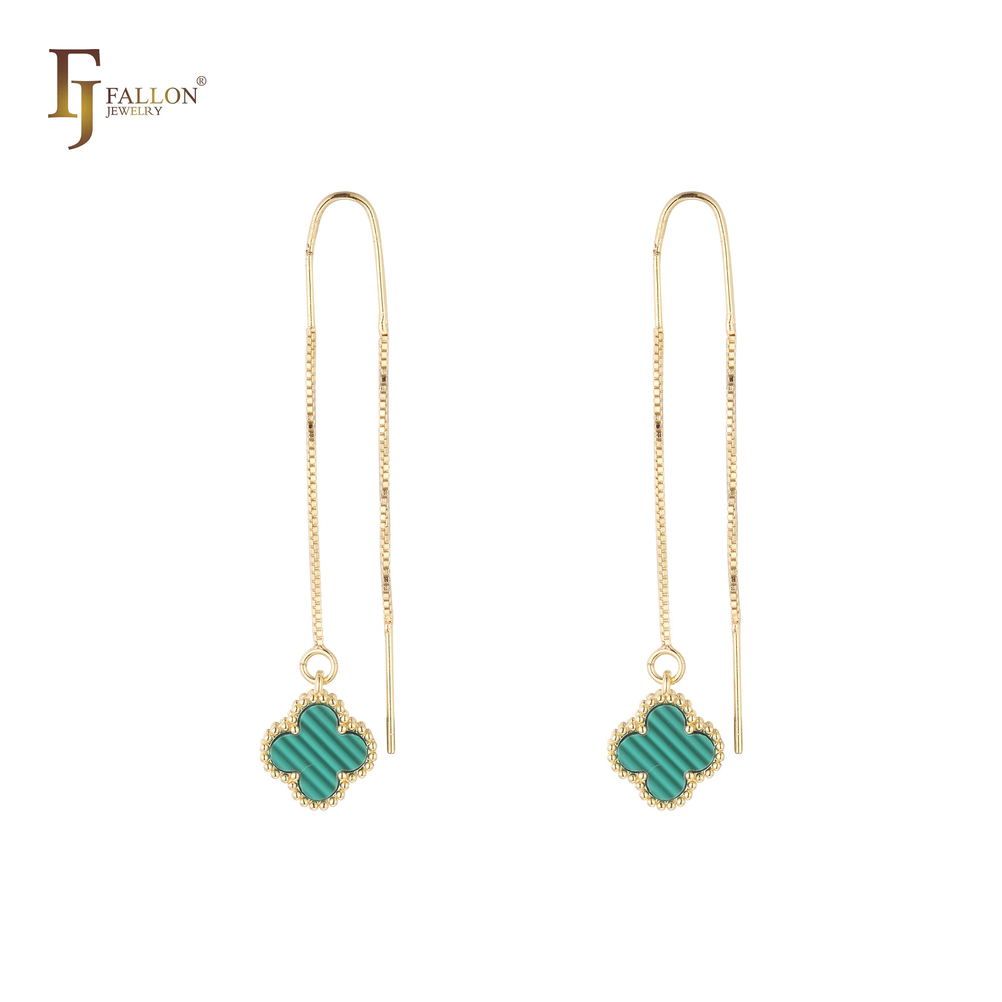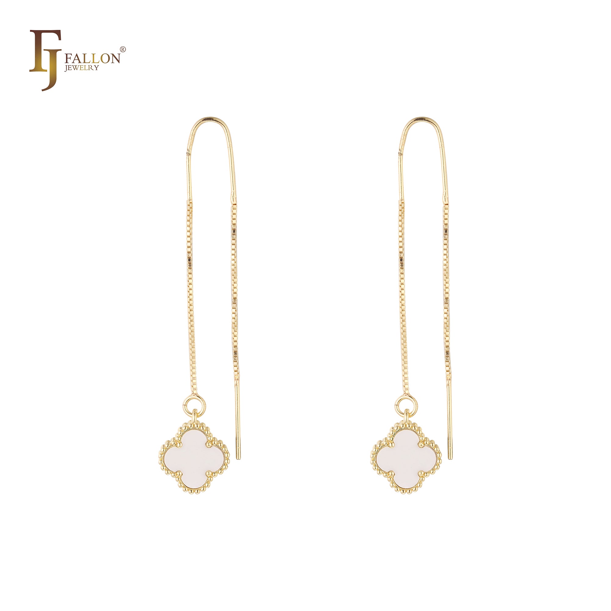 Clover threader earrings in White Gold, Rose Gold plating colors