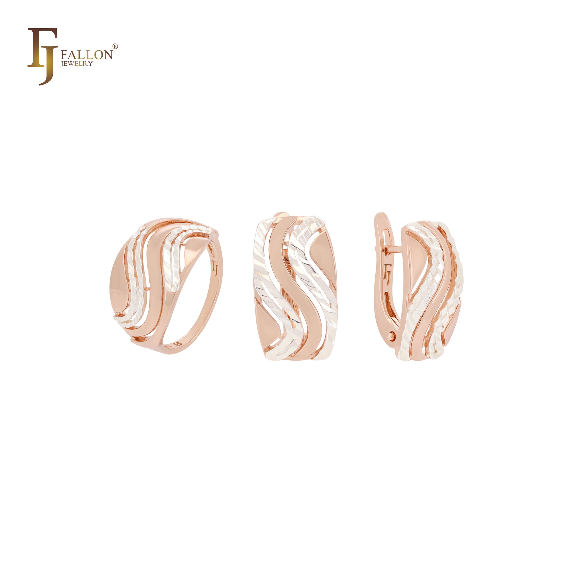 Curved wavy geometric rows Rose Gold two tone Jewelry Set with Rings
