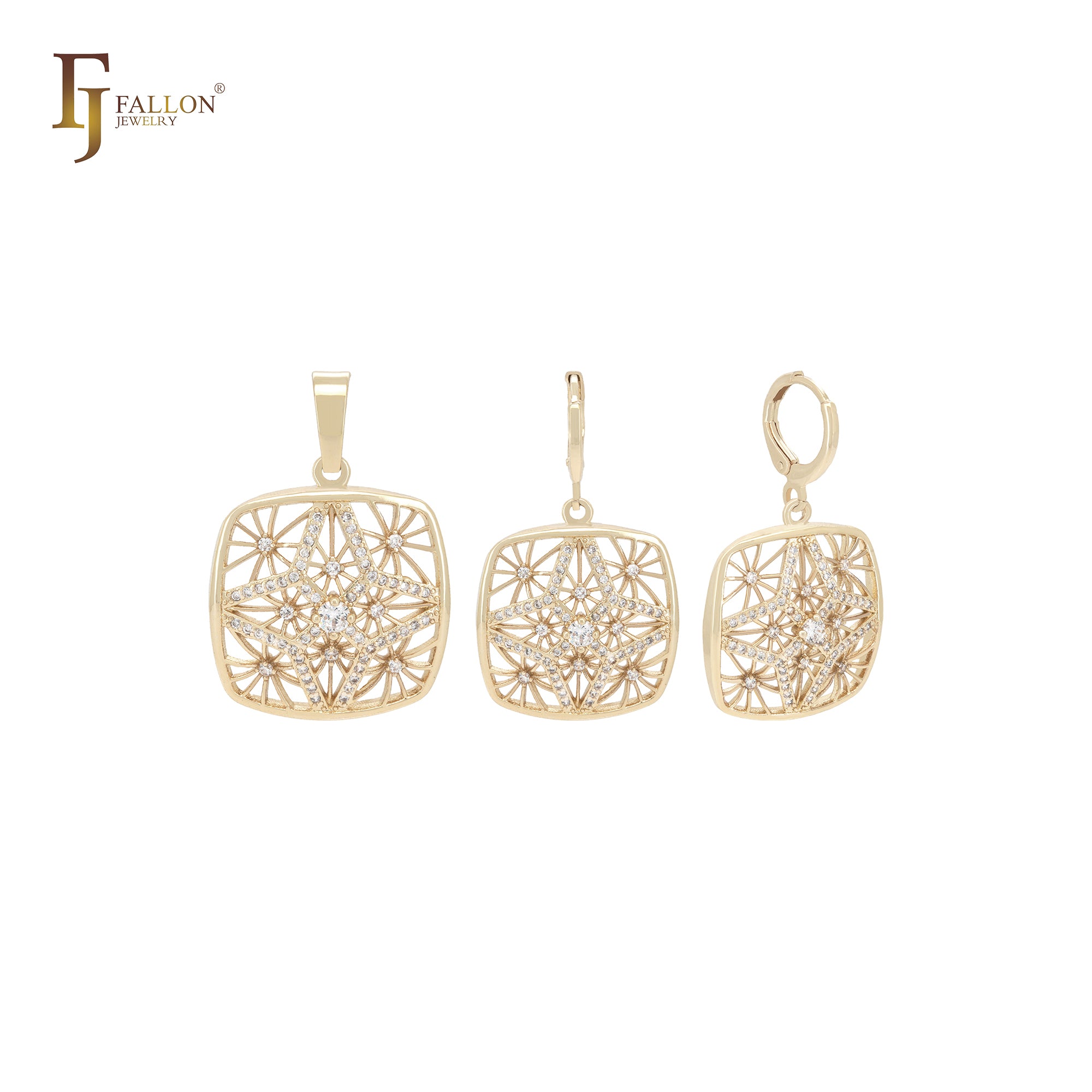 Cushion shape snowflake Rose Gold Jewelry set with Pendant