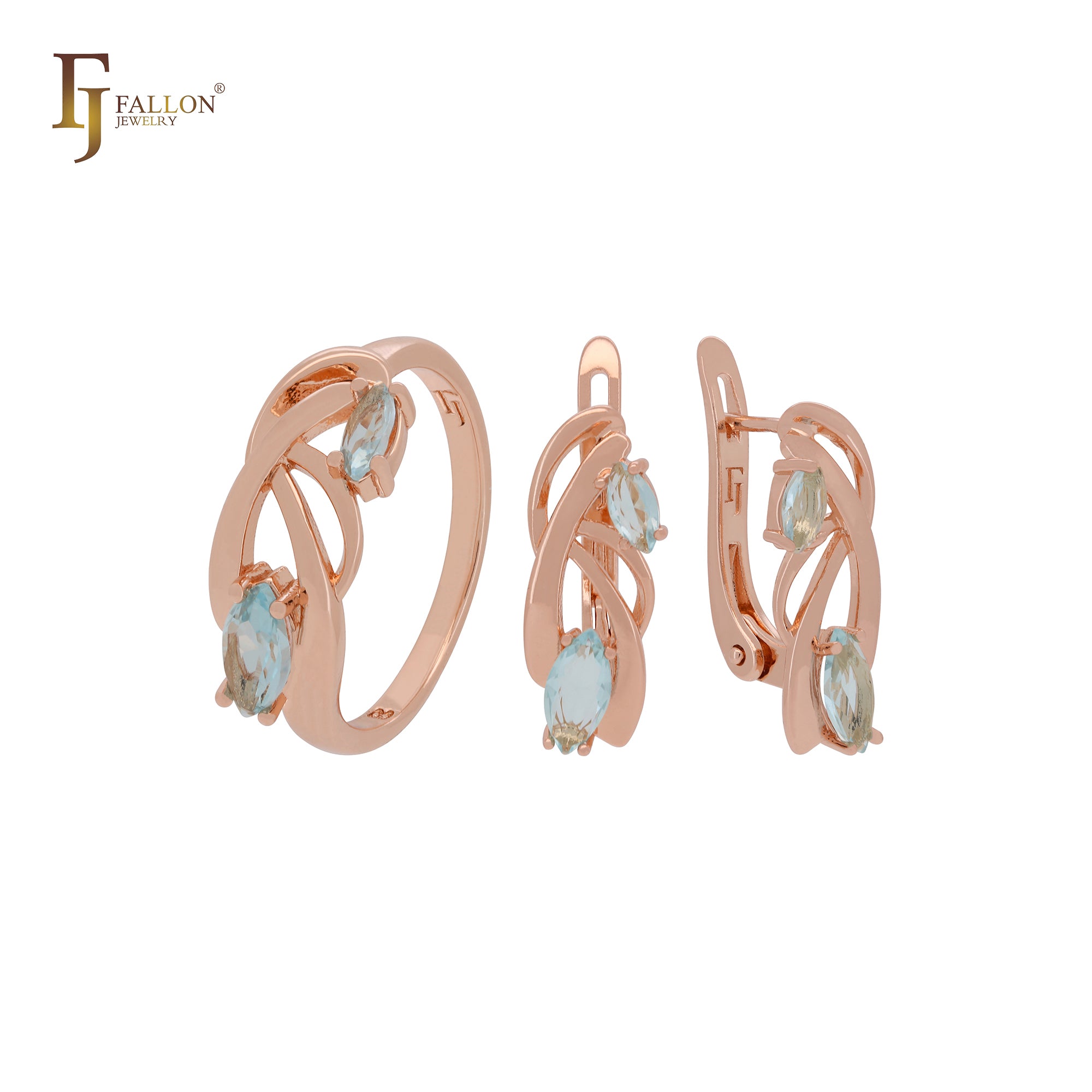 Branches of double lake blue Marquise CZs Rose Gold Jewelry Set with Earrings