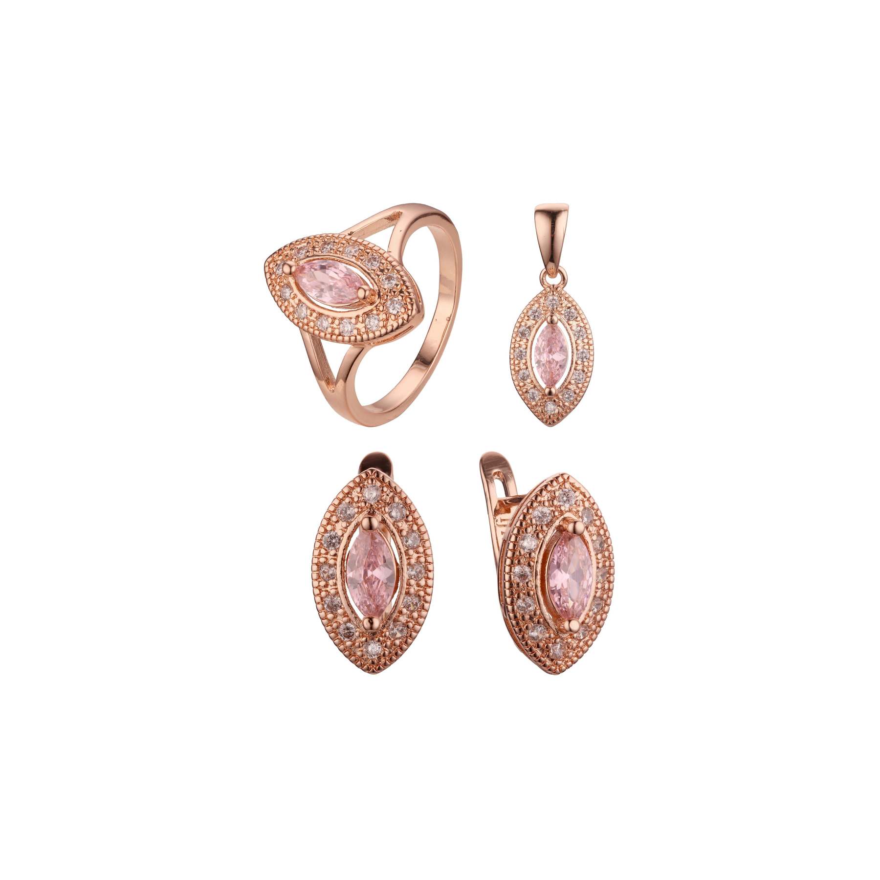 Halo Marquise big stone jewelry set plated in 14K Gold, Rose Gold