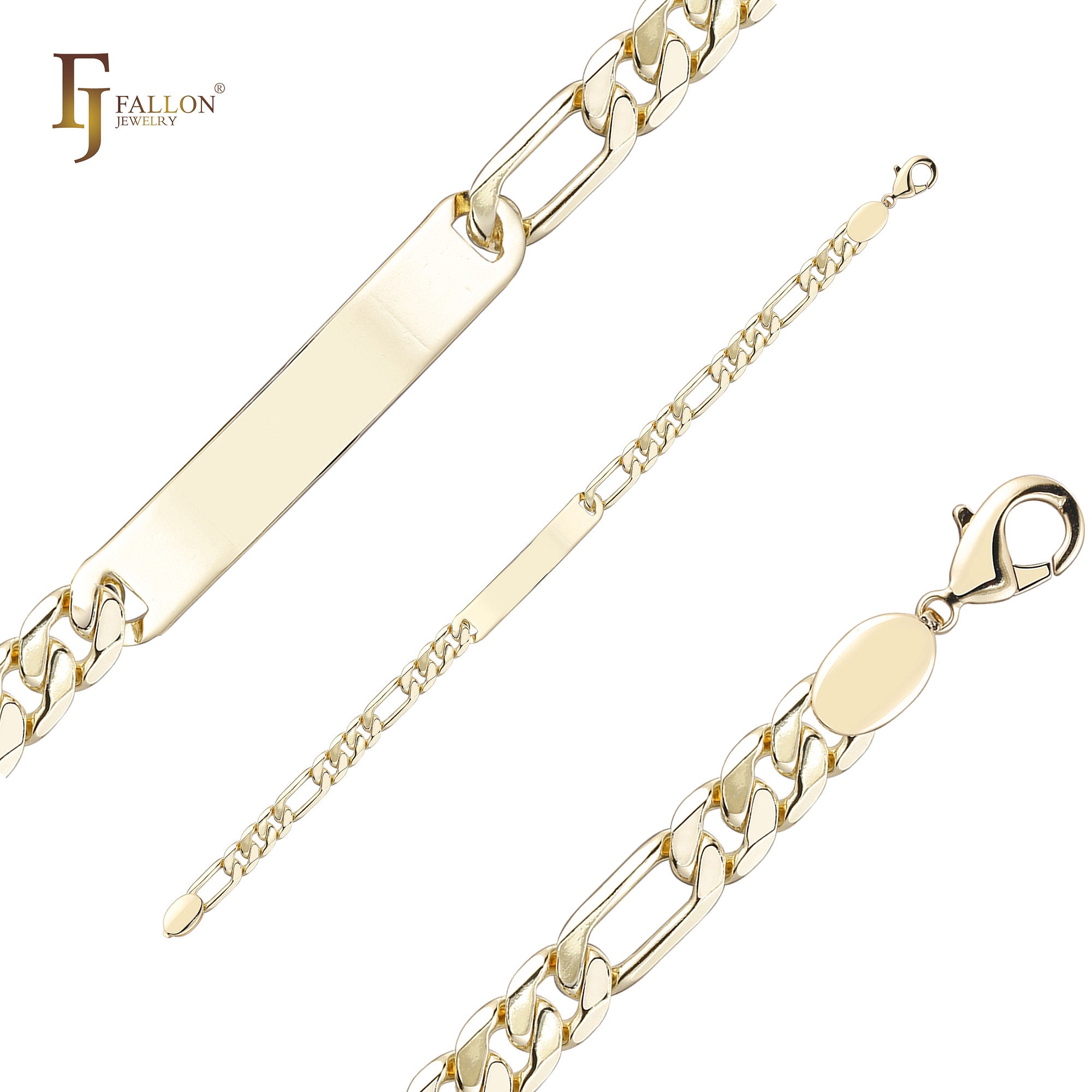 Nice polished Figaro link Men's ID bracelets plated in 14K Gold colors