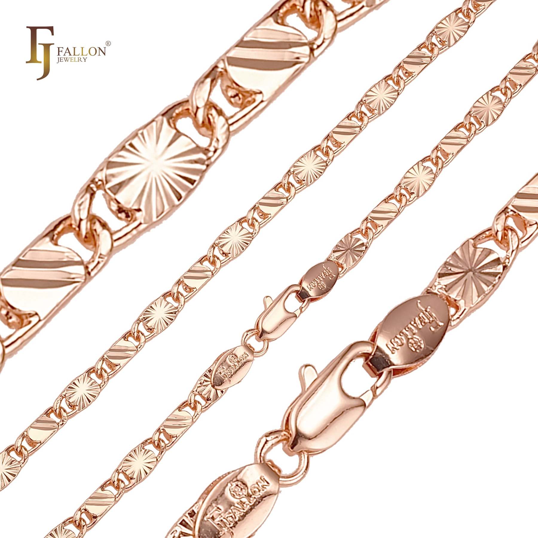 Alternative Sunburst and slash hammered solid snail link Rose Gold chains