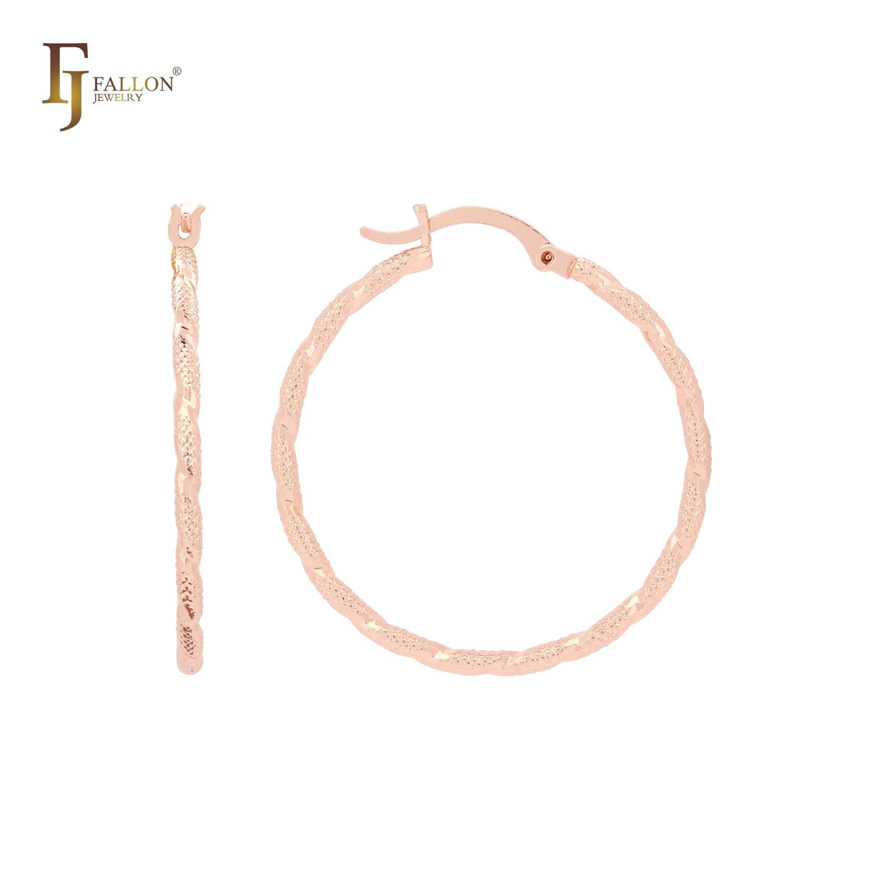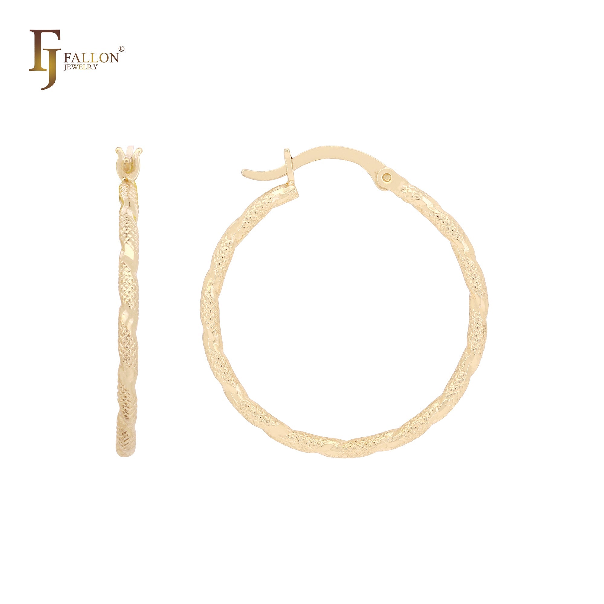 Rope Rhombus Textured 14K Gold, Rose Gold, White Gold Hoop earrings