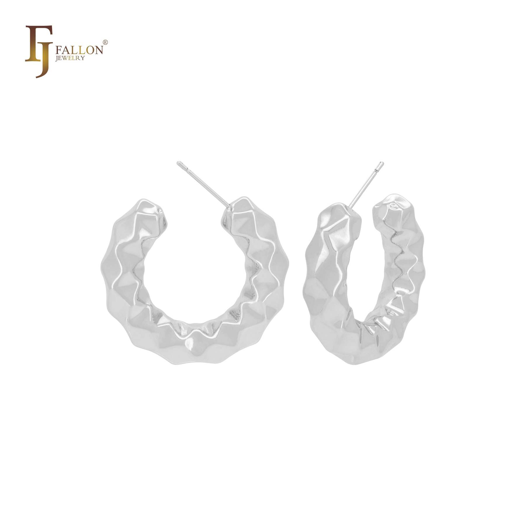Rhombus textured shaped C Hoop 14K Gold, Rose Gold, White Gold Stud Earrings