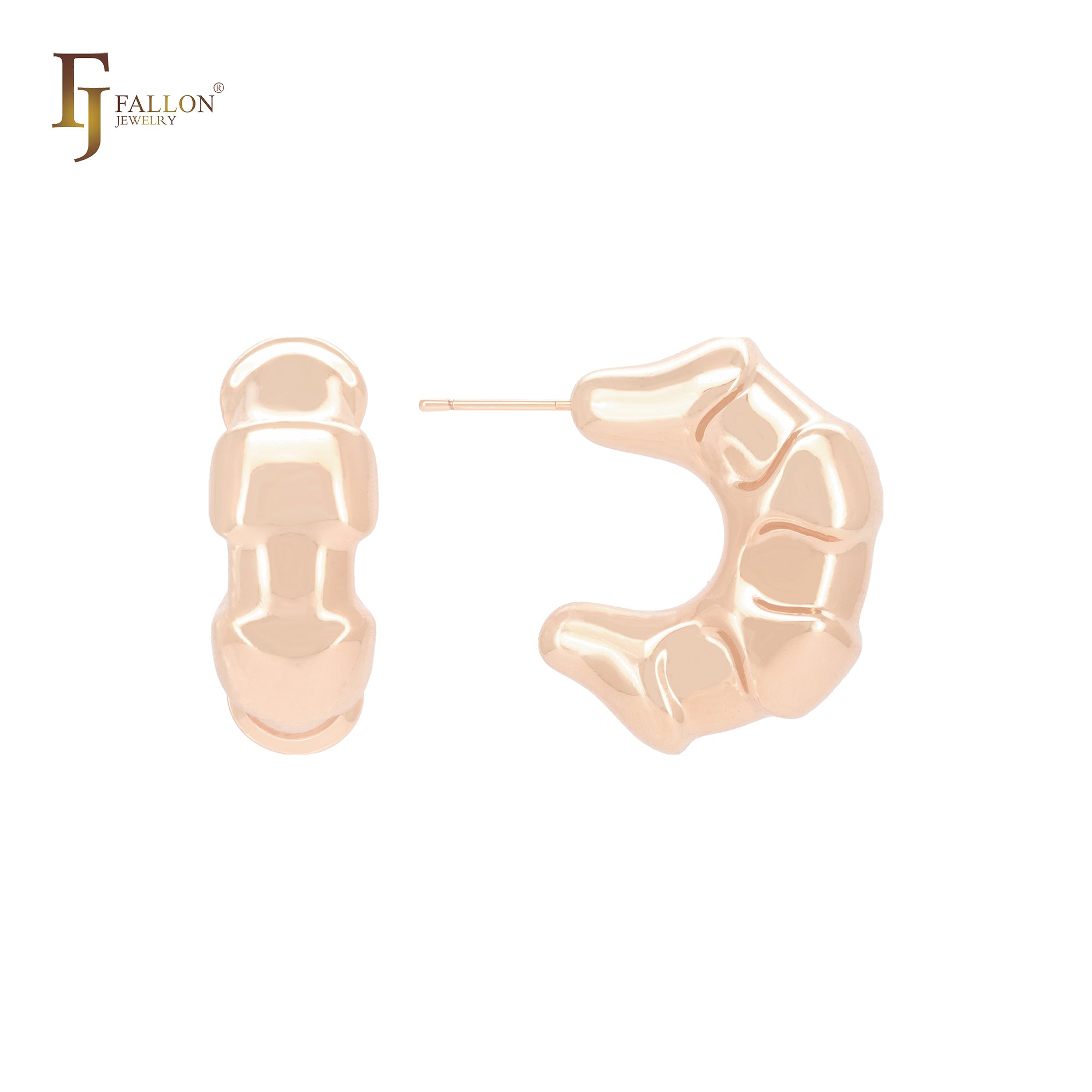 Croissant shaped C Hoop 14K Gold, Rose Gold, White Gold Stud Earrings