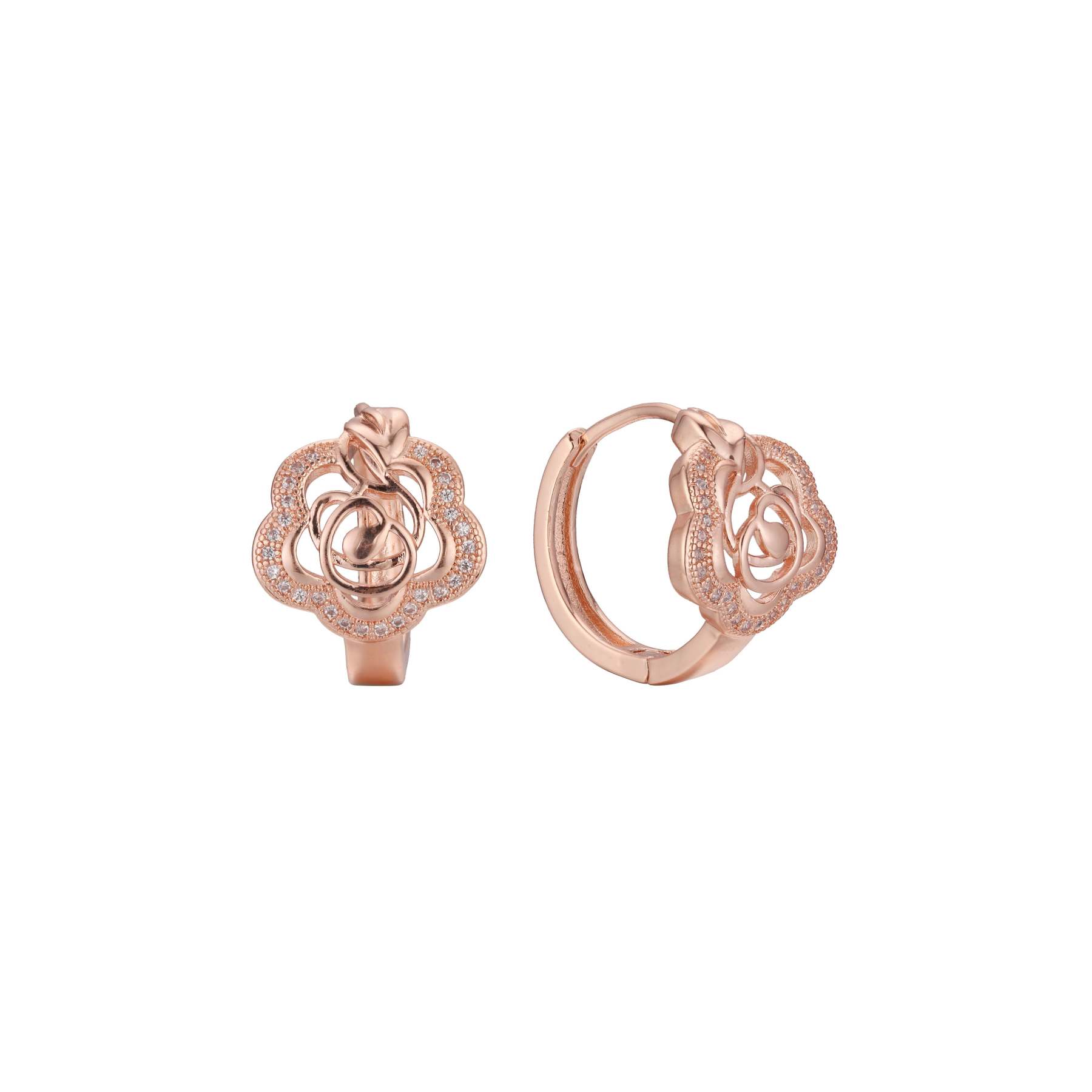 Flower huggie earrings in 14K Gold, Rose Gold plating colors