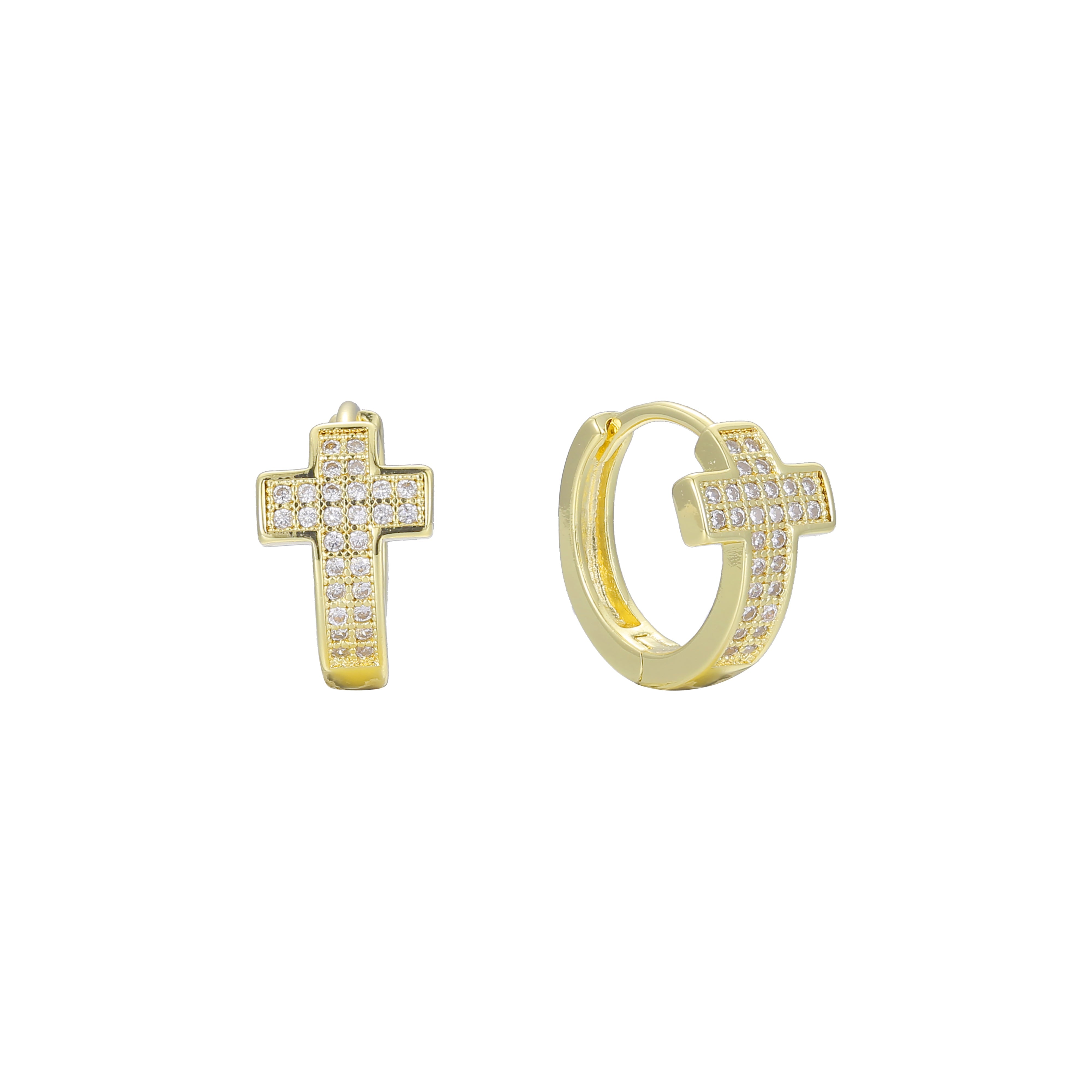 Cross cluster 14K Gold huggie earrings