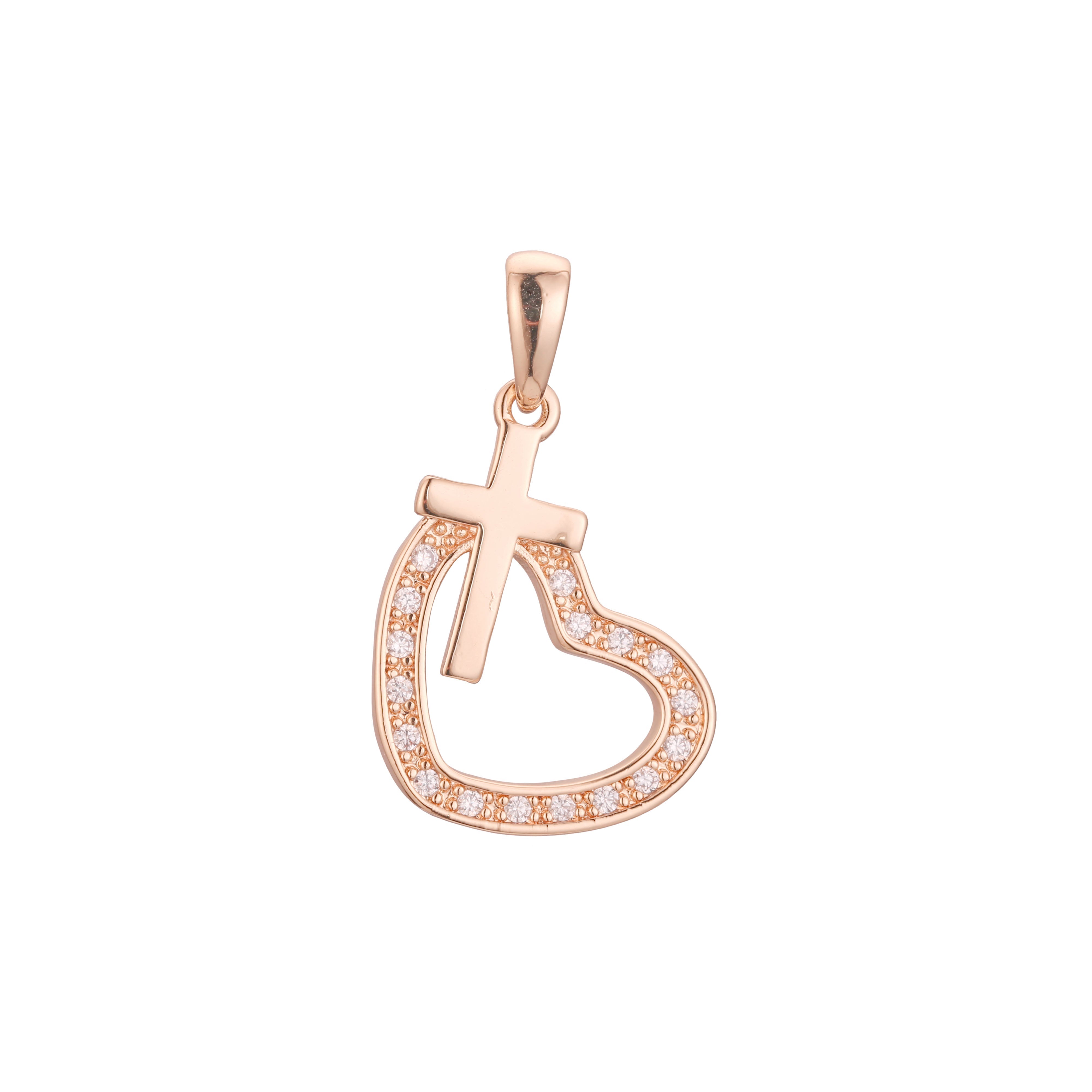 Cross in a heart pendant in Rose Gold, 14K Gold plating colors