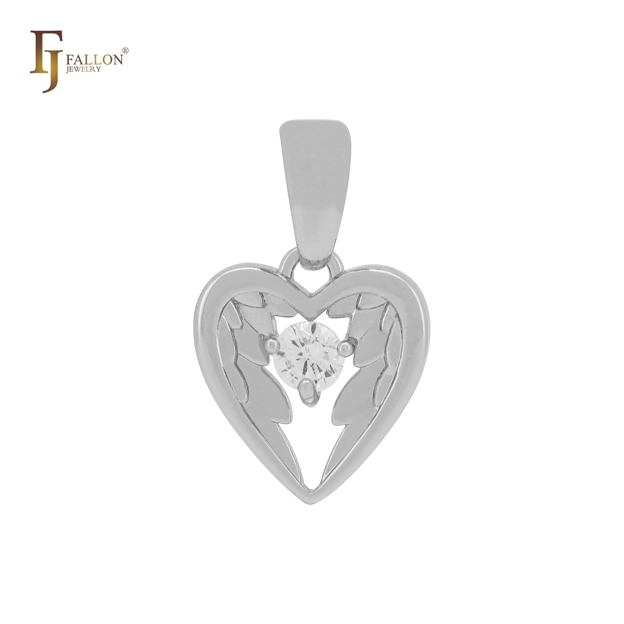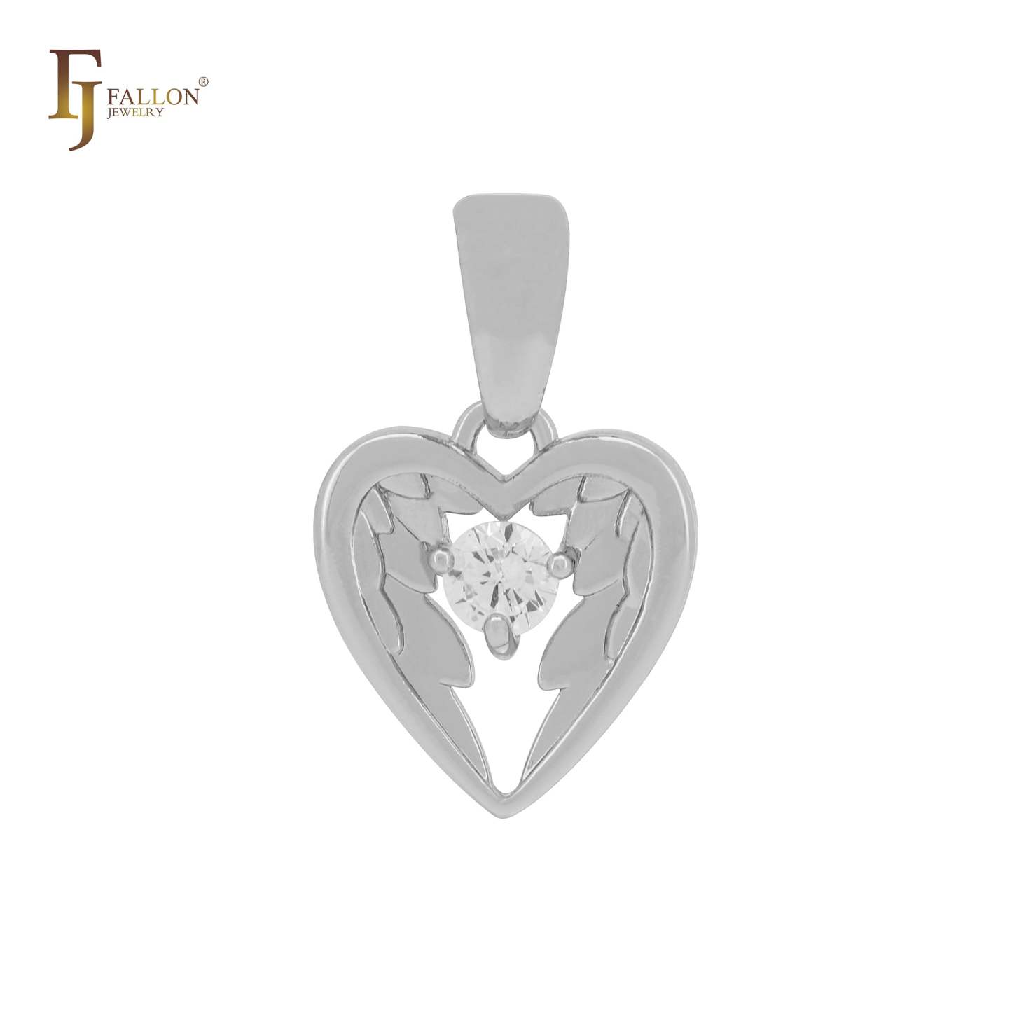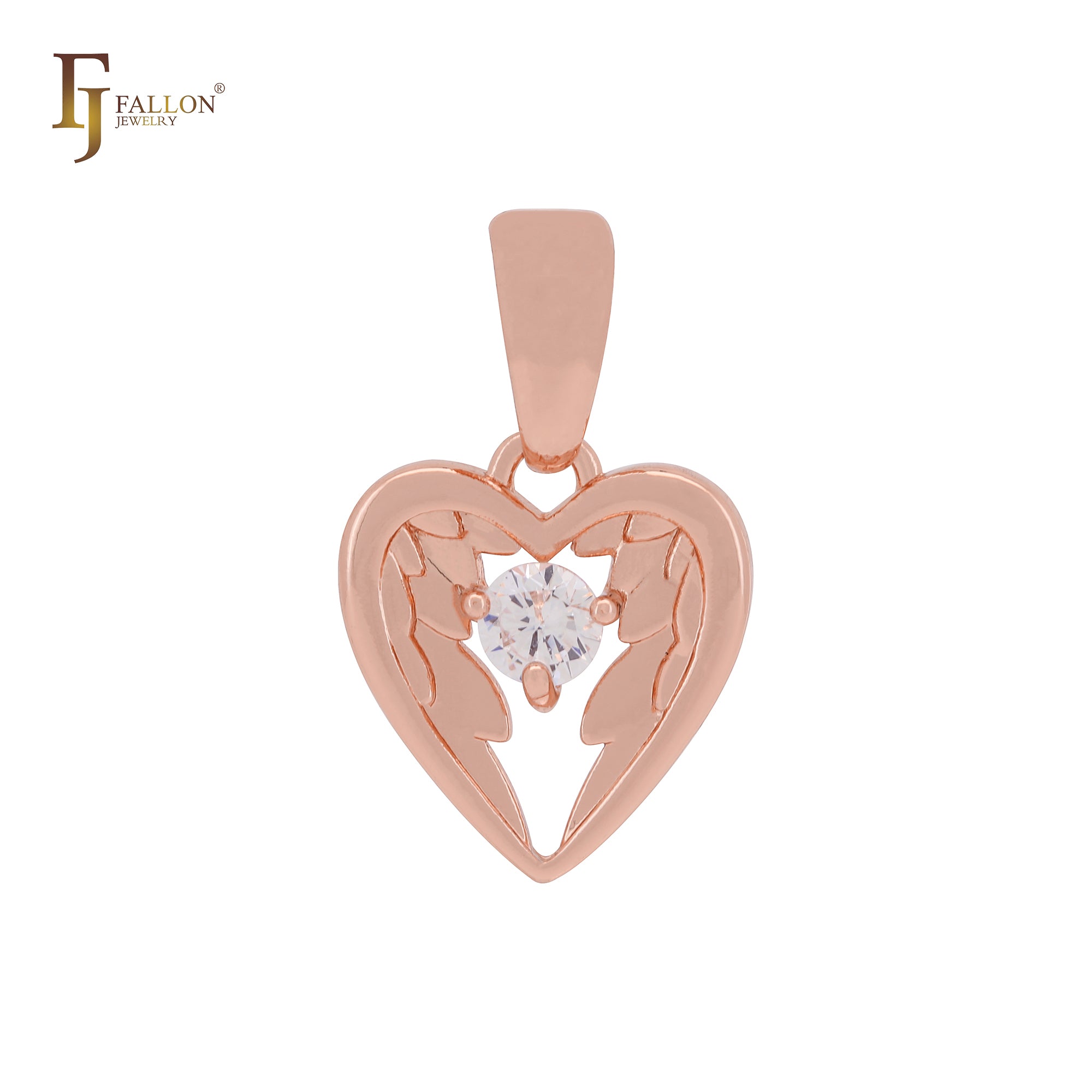 Angel's Wing with heart white CZ Rose Gold Fashion Pendant