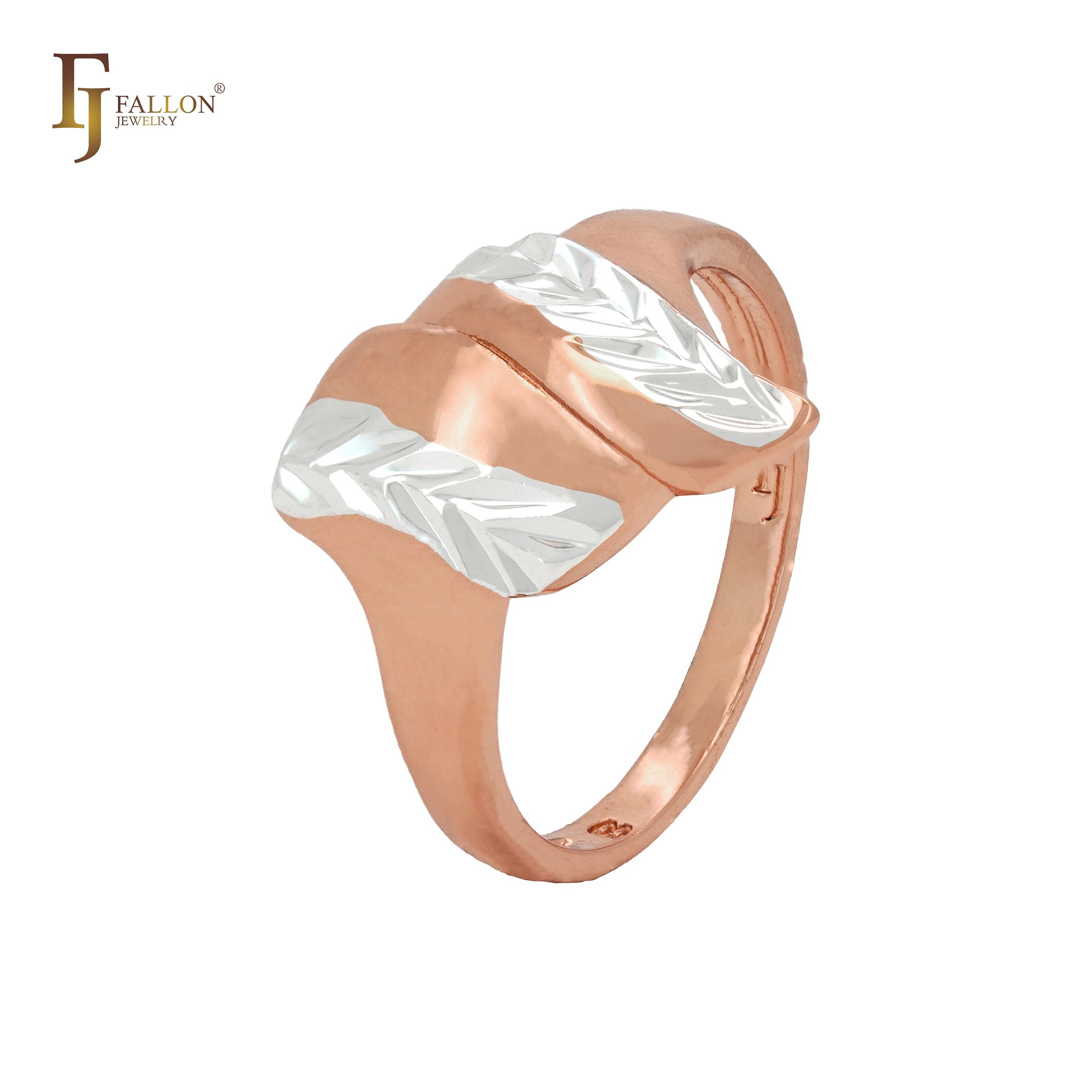 Double twisted leaves crossing Rose Gold two tone Fashion Rings