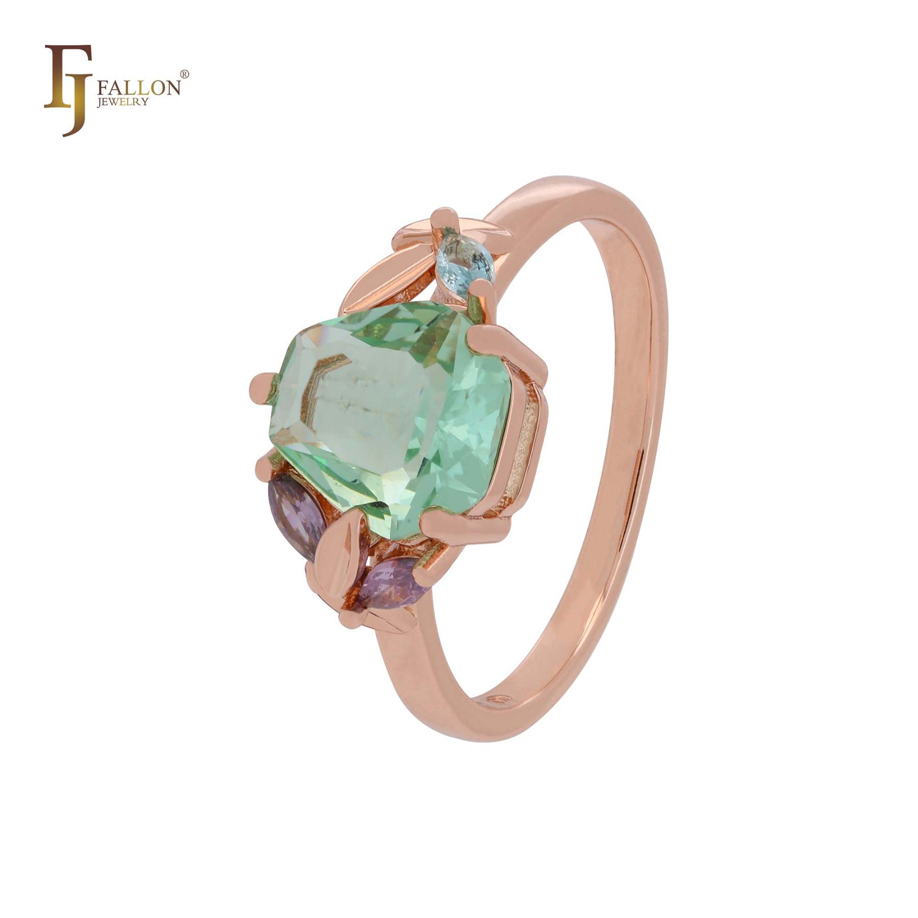 Cluster fruitful leaves colorful CZs Apple green Rose Gold Fashion Rings