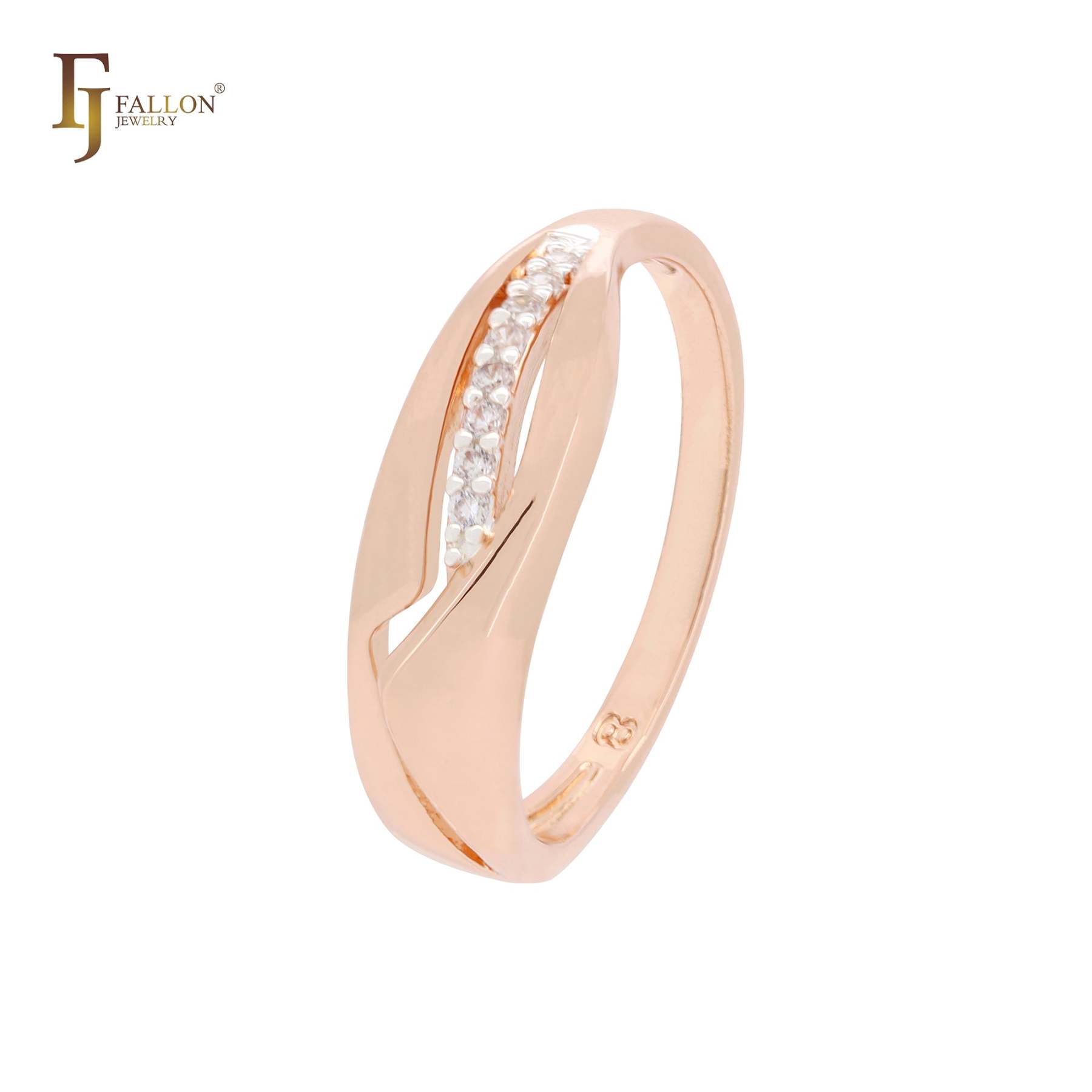Geometric with slash of white CZs Rose Gold two tone Fashion Rings