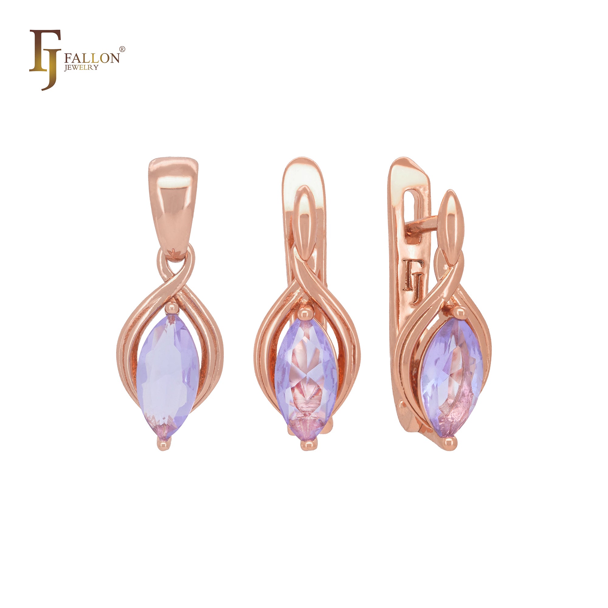 Solitare marquise pink purple Rose Gold Jewelry Set with pendant